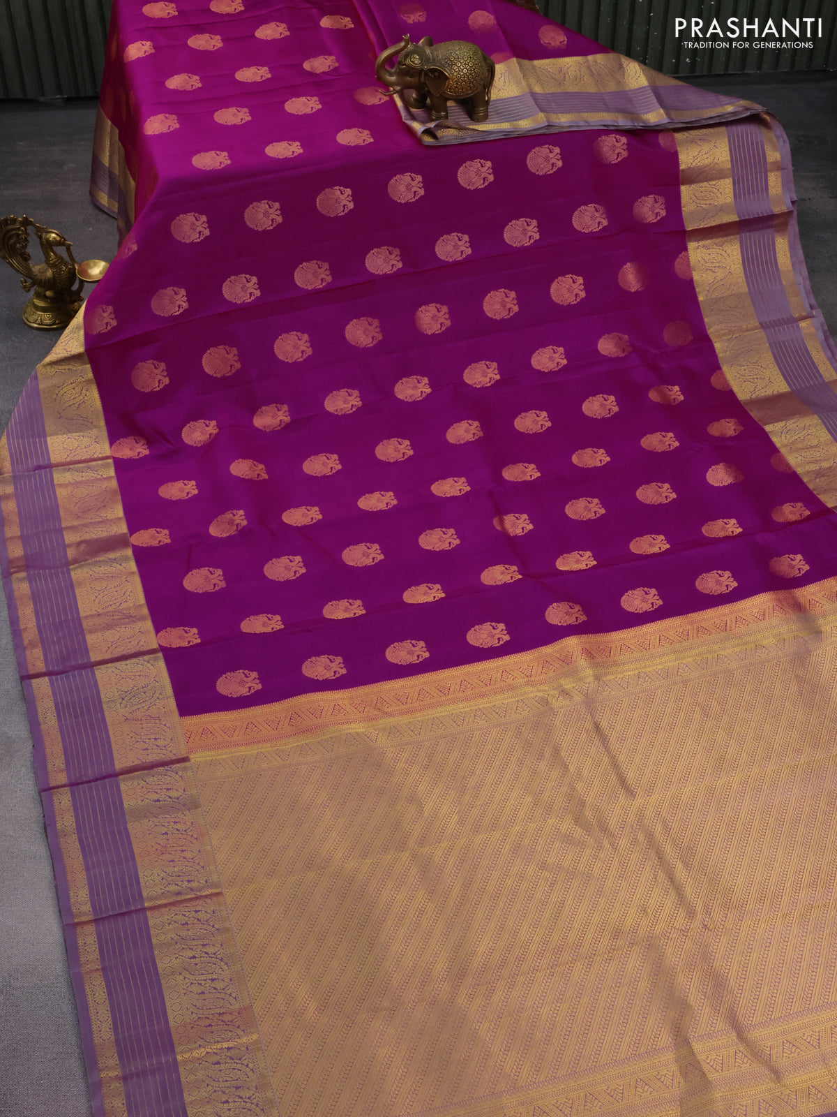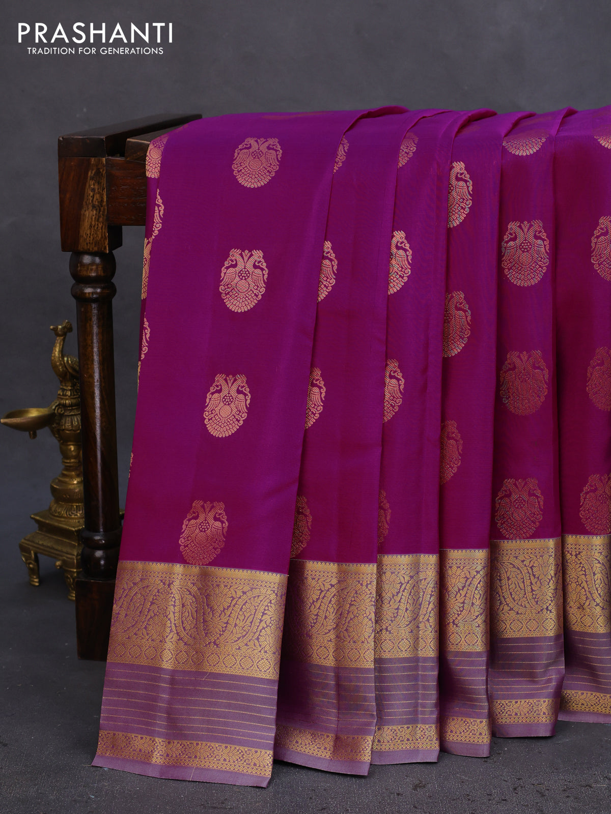 Pure kanchipuram silk saree purple and dual shade of grey with annam zari woven buttas and zari woven border