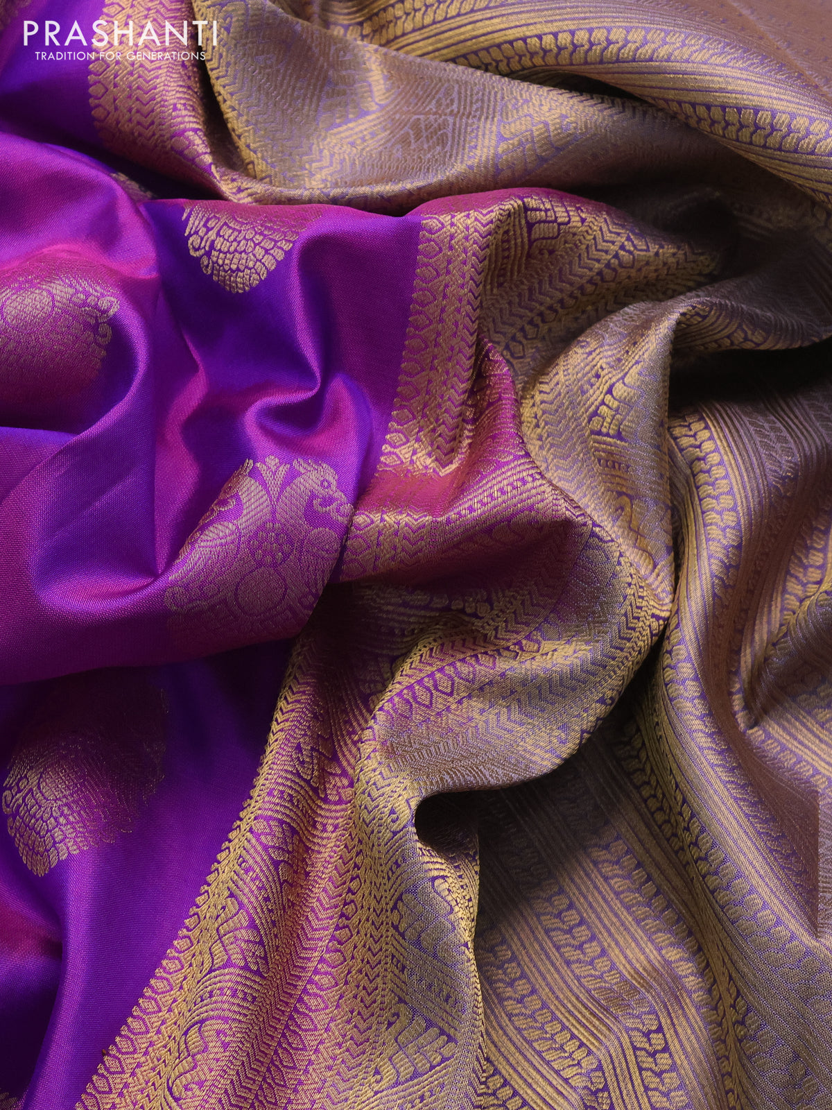 Pure kanchipuram silk saree purple and dual shade of violet with annam zari woven buttas and zari woven border