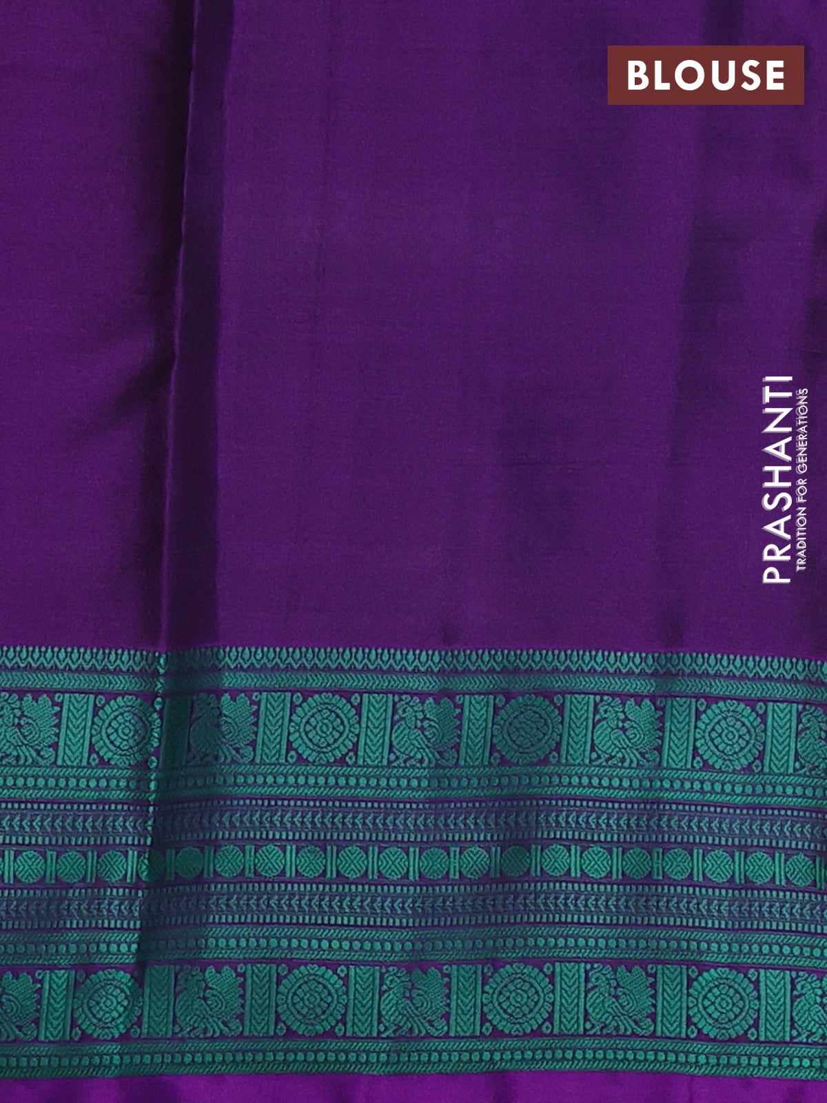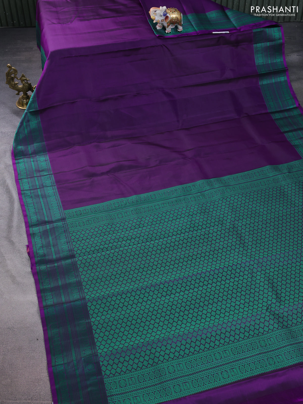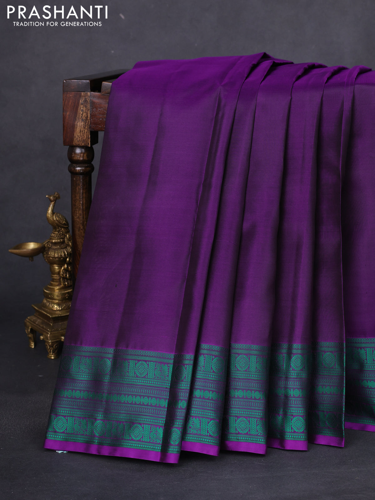 Pure kanchipuram silk saree purple and green with plain body and thread woven border