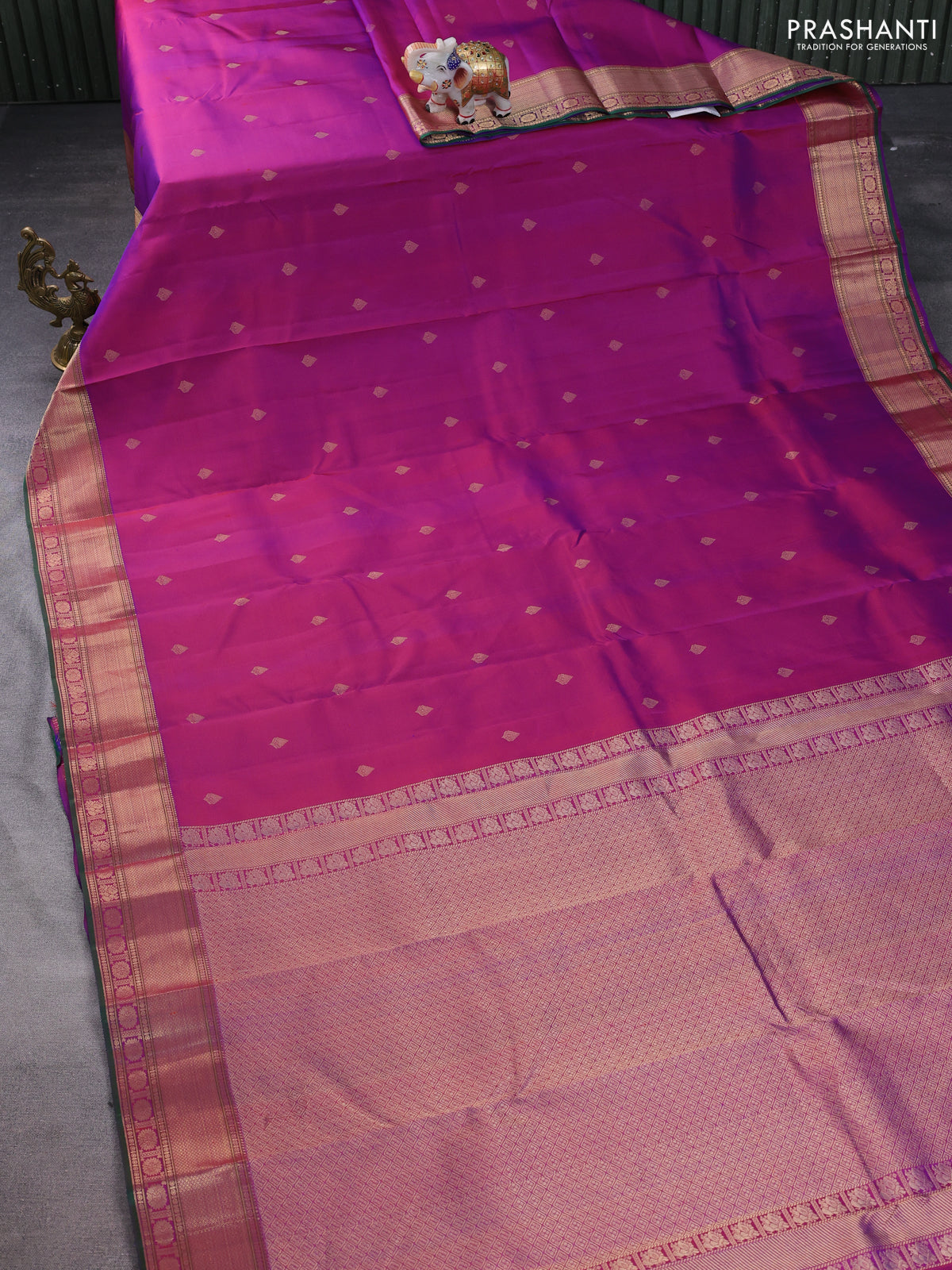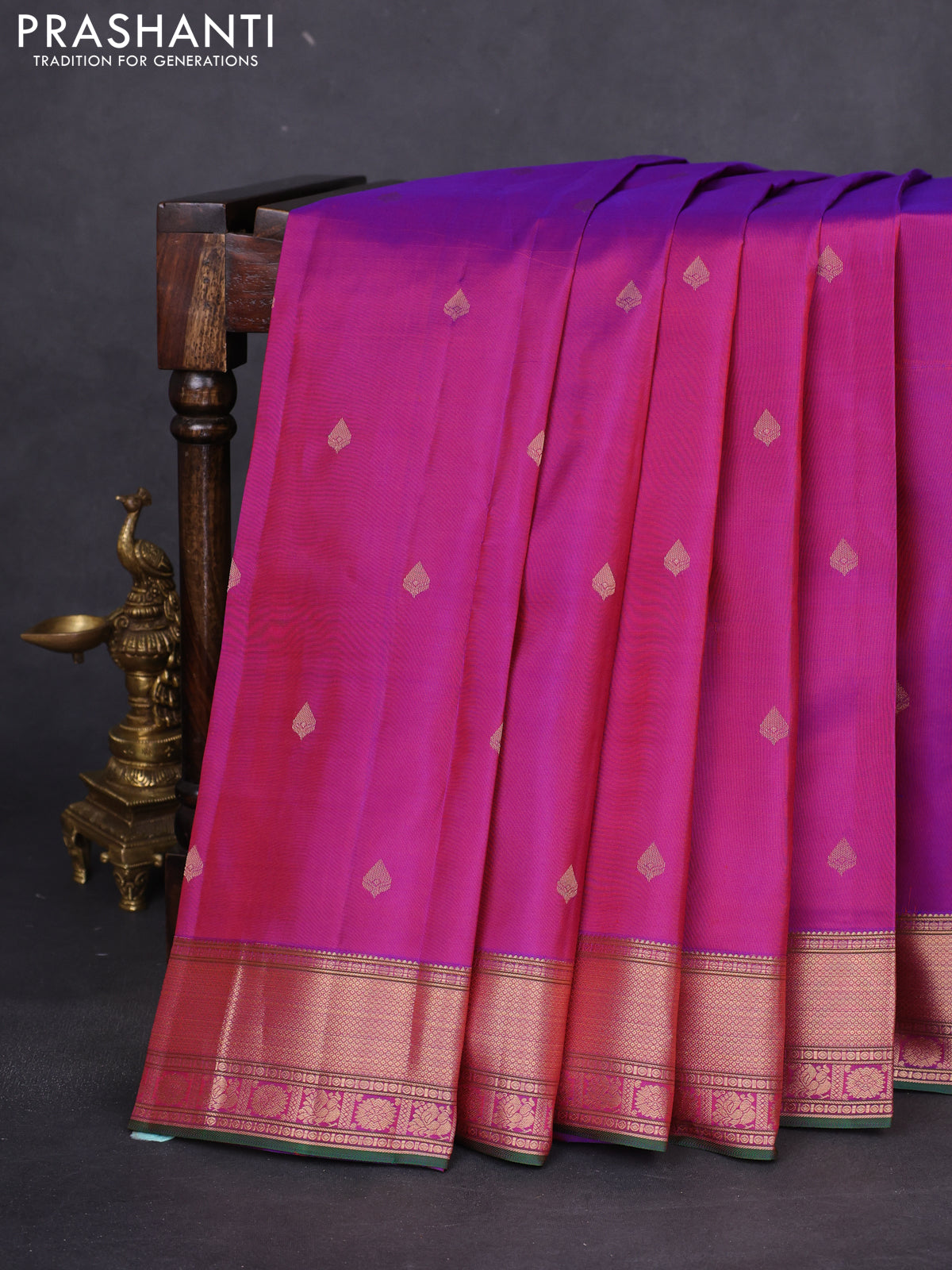 Pure kanchipuram silk saree purple and green with zari woven buttas and rich zari woven border