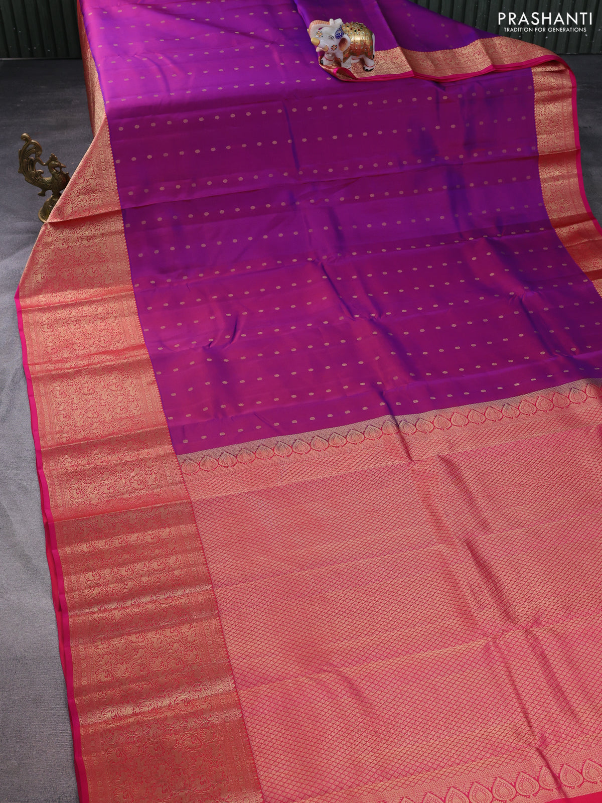 Pure kanchipuram silk saree purple and pink with allover zari woven buttas and long rich zari woven border