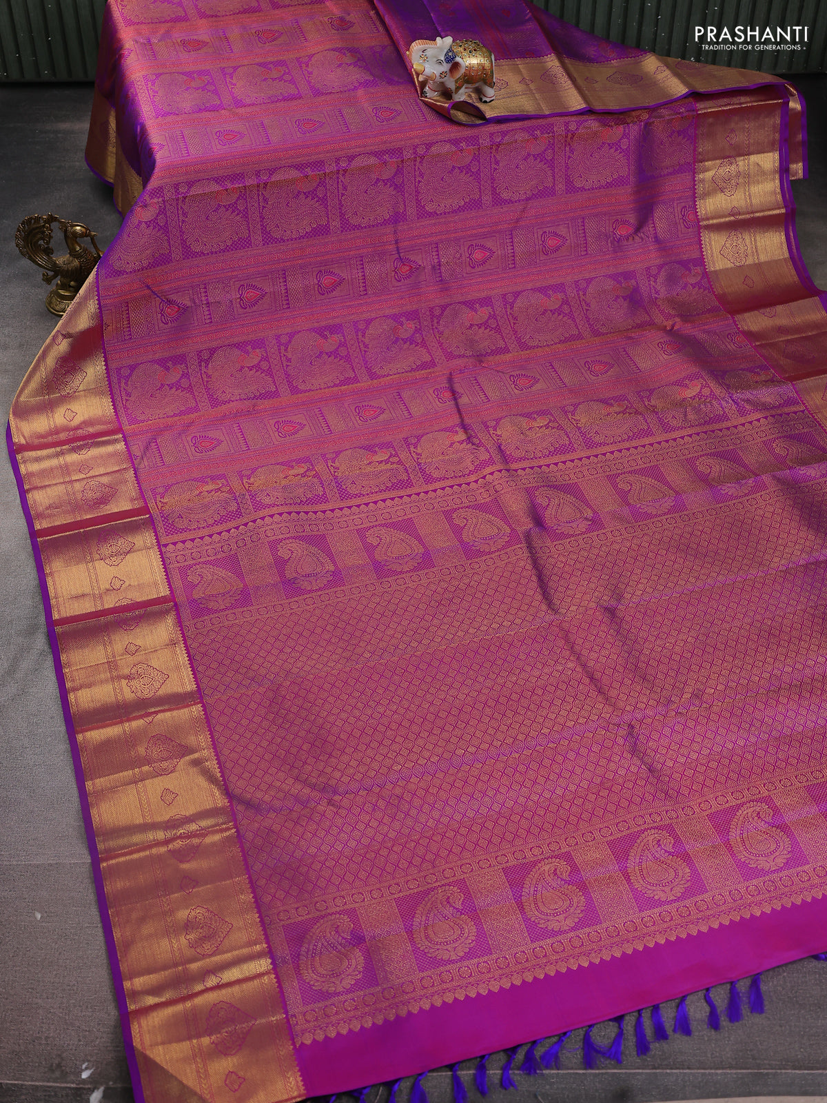Pure kanchipuram silk saree purple with allover zari woven brocade weaves and zari woven border