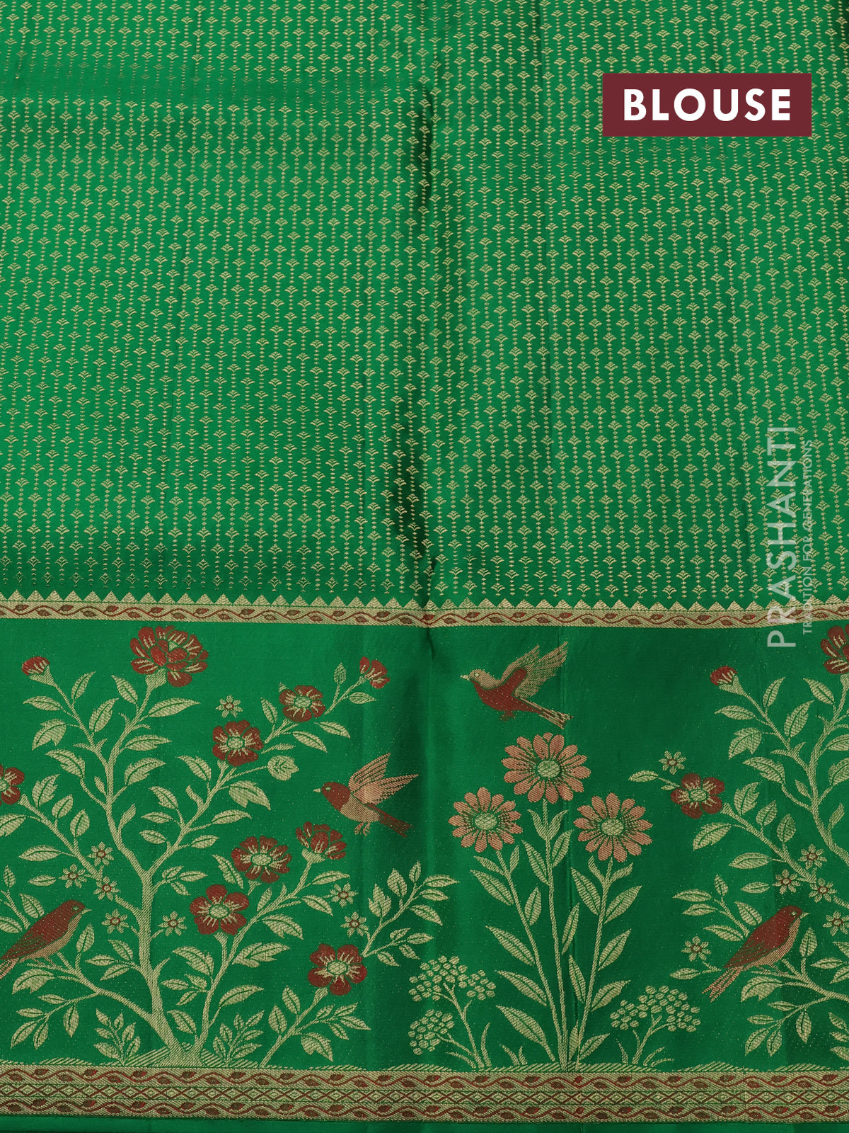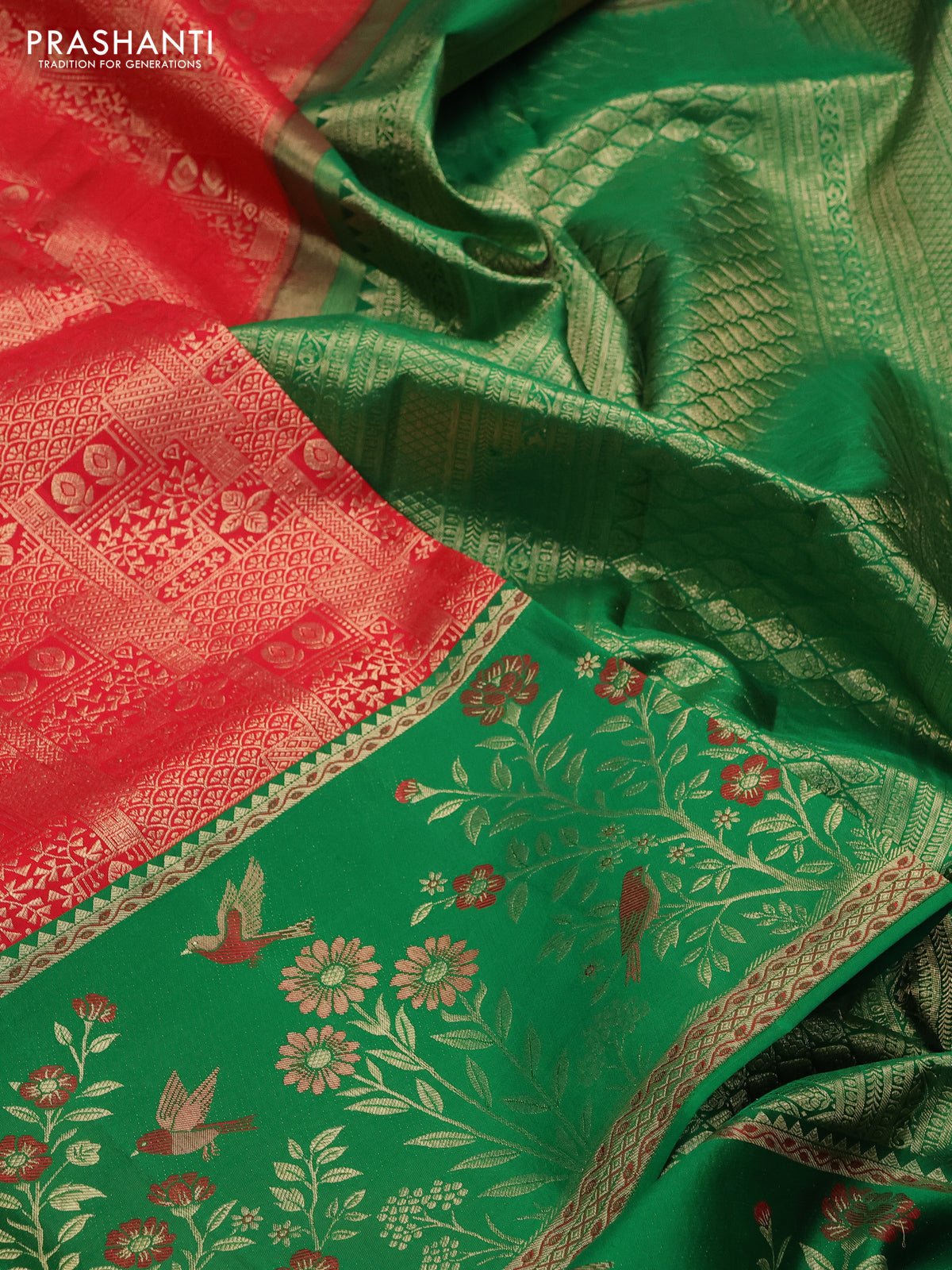 Pure kanchipuram silk saree red and green with allover zari woven brocade weaves and rich zari woven border