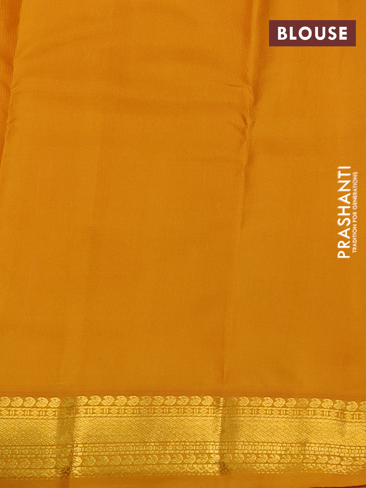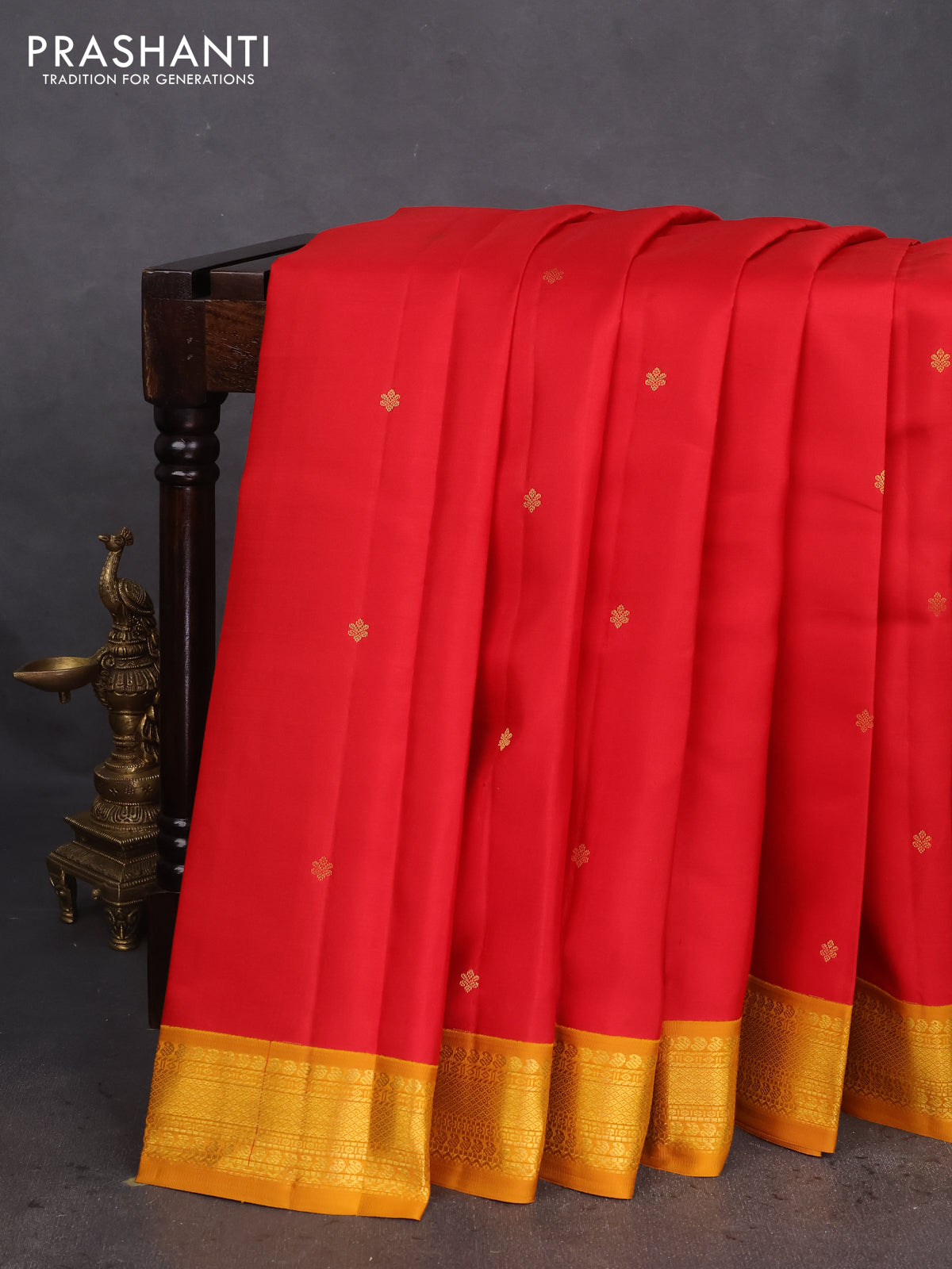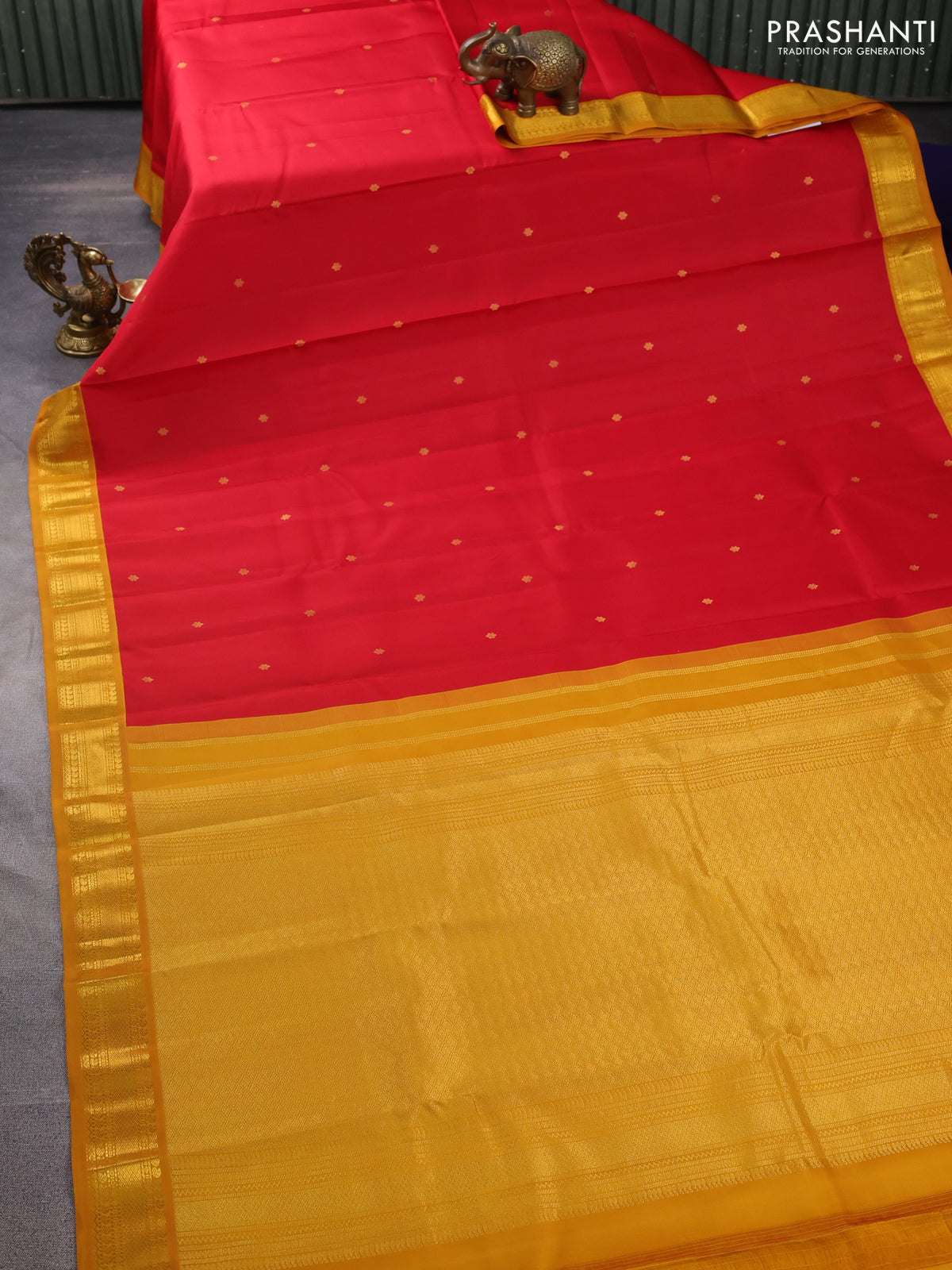 Pure kanchipuram silk saree red and mustard yellow with zari woven buttas and zari woven korvai border