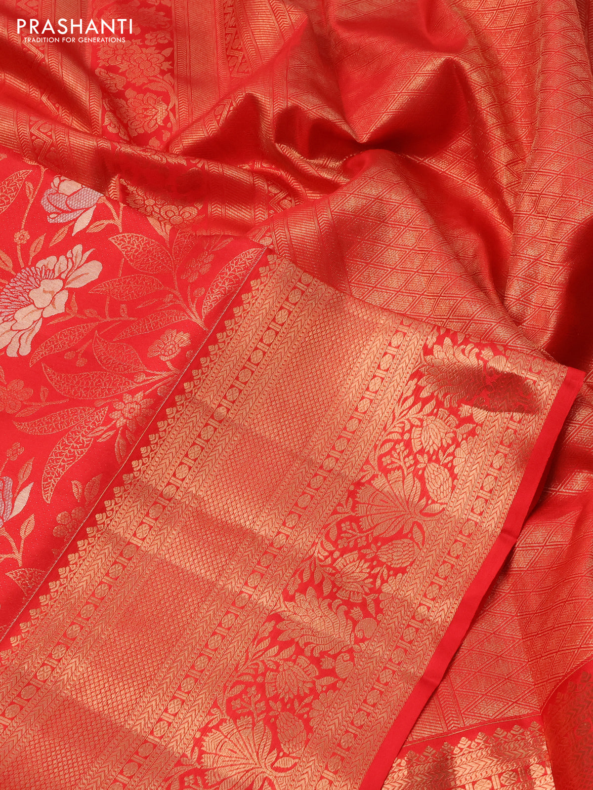 Pure kanchipuram silk saree red with allover zari woven floral brocade weaves and rich zari woven border