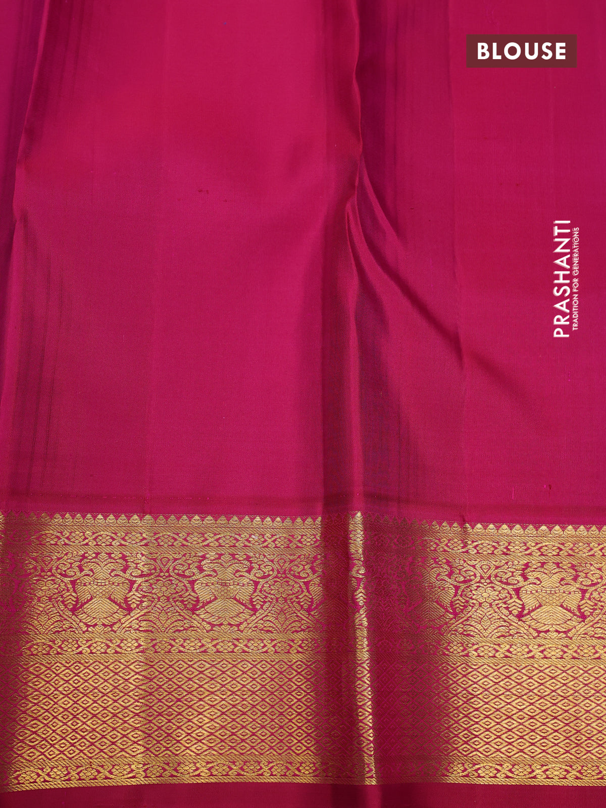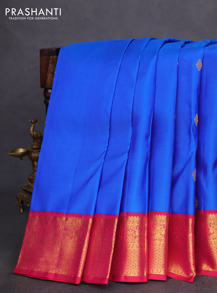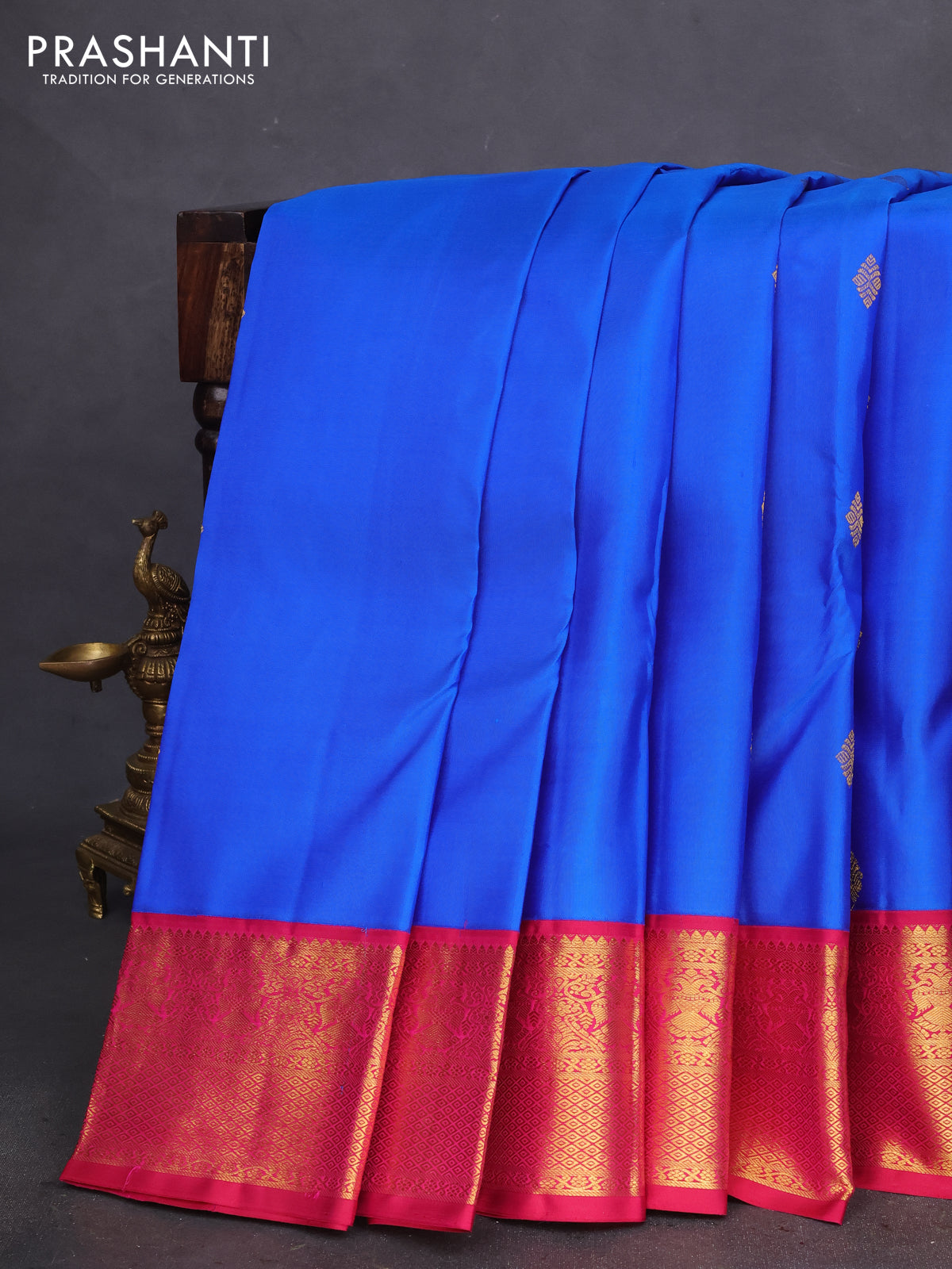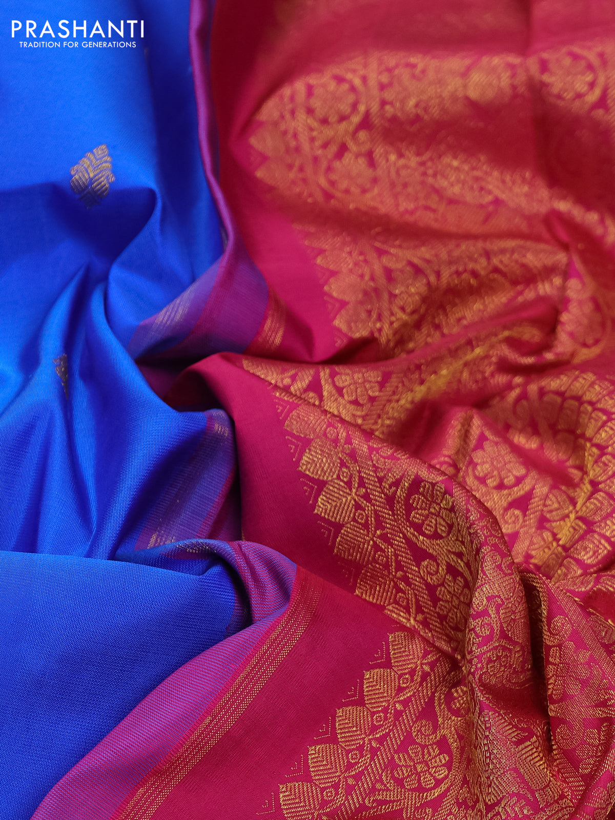 Pure kanchipuram silk saree royal blue and dark pink with zari woven buttas and zari woven korvai border
