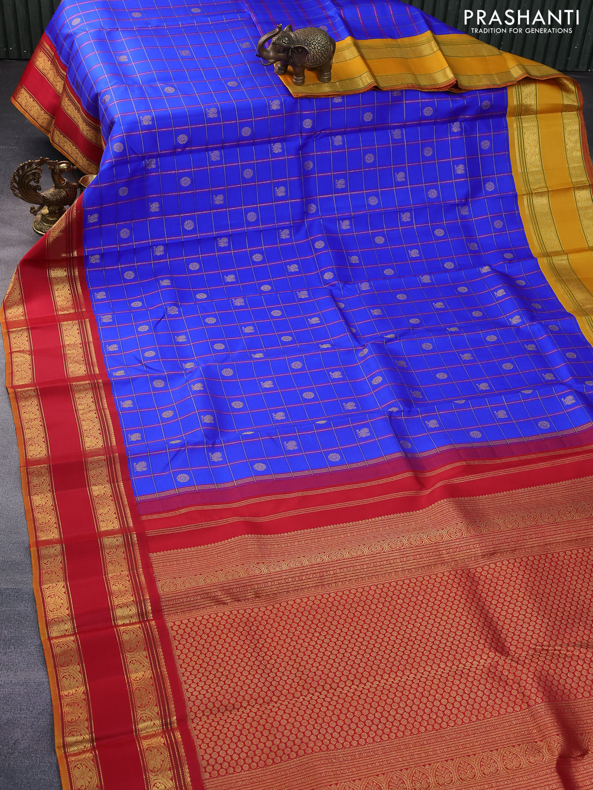 Pure kanchipuram silk saree royal blue with allover zari checks & buttas and ganga jamuna border