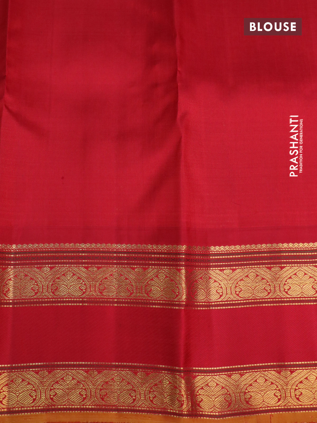Material : Pure Kanchipuram Silk SILK MARK CERTIFIED Blouse : Attached Length of saree : 6.2 mts (5.5 mts saree... Read more