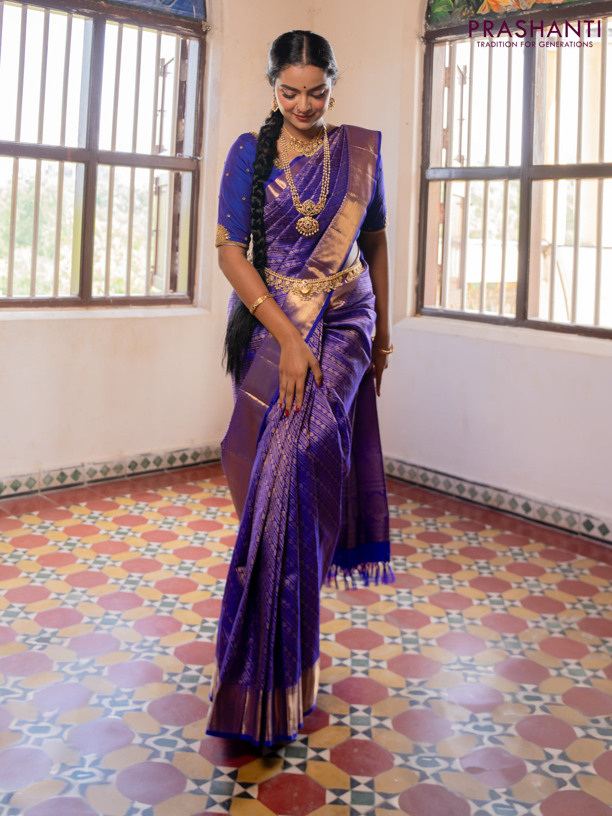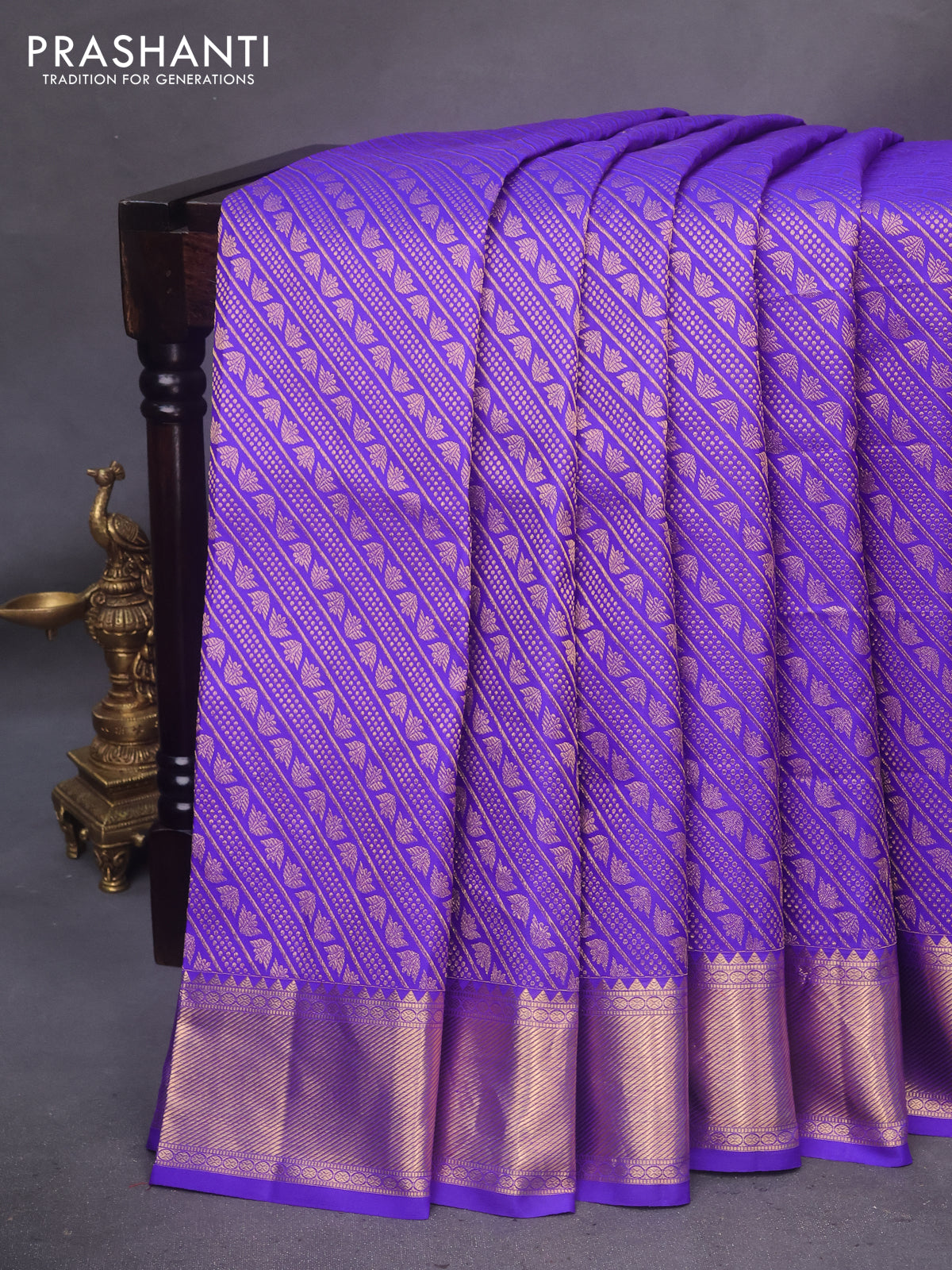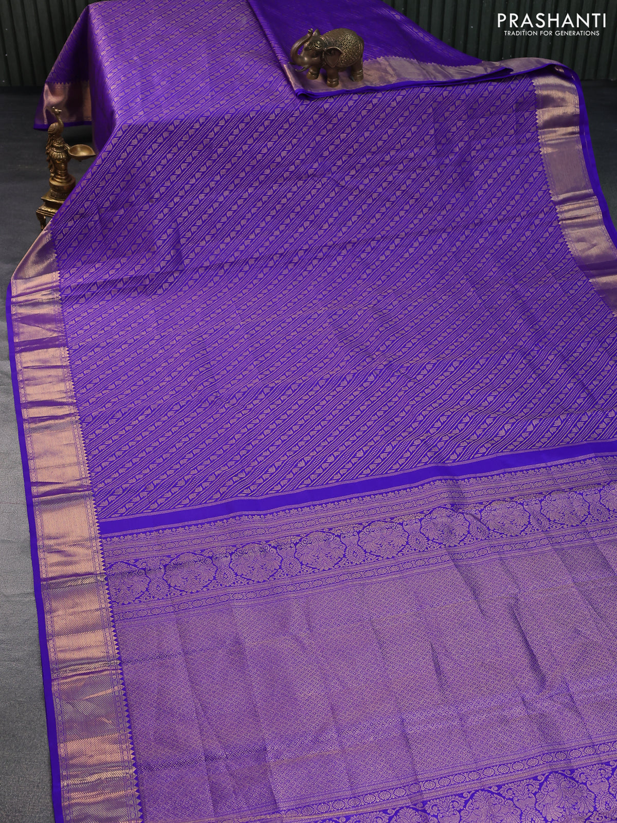 Pure kanchipuram silk saree royal blue with allover zari woven brocade weaves and zari woven border