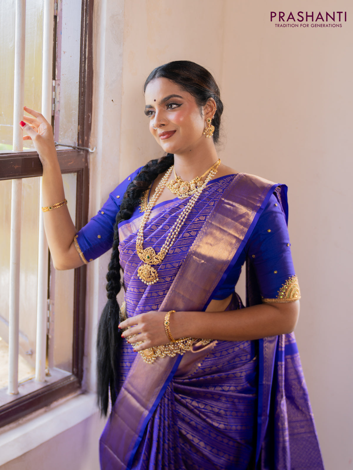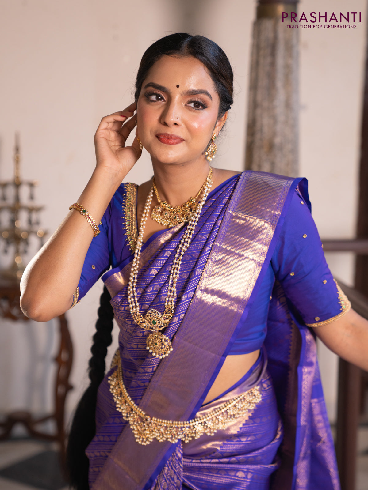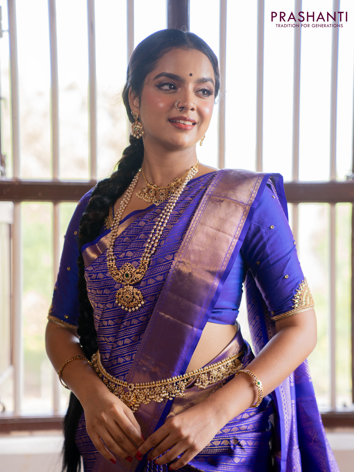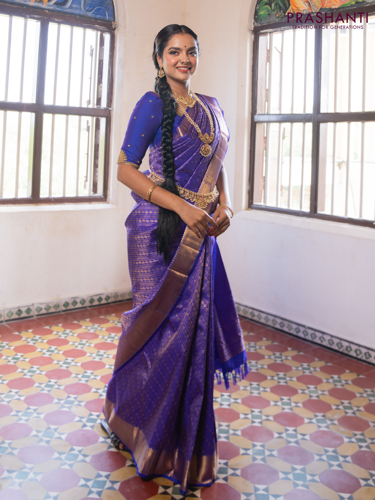 Pure kanchipuram silk saree royal blue with allover zari woven brocade weaves and zari woven border