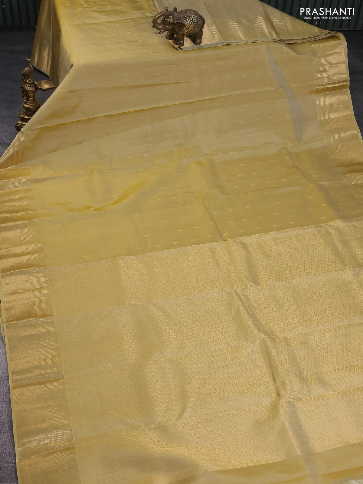 Pure kanchipuram silk saree sandal with allover zari woven temple buttas and rich zari woven border