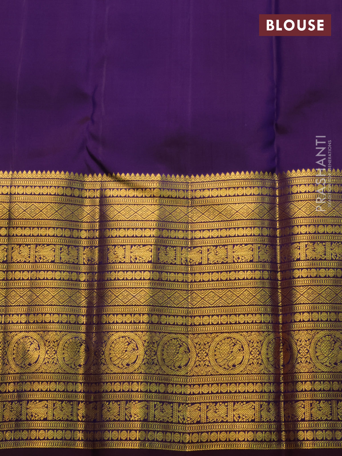 Pure kanchipuram silk saree teal blue and deep jamun with allover zari woven brocade weaves and long zari woven border