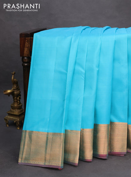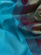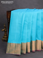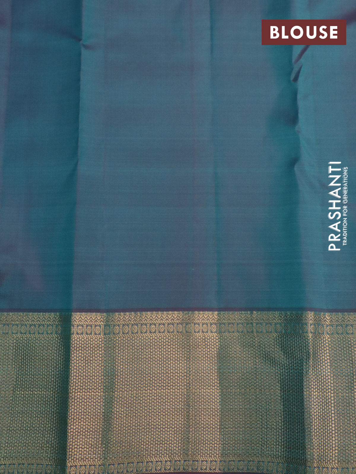 Pure kanchipuram silk saree teal blue and dual shade of pink with plain body and zari woven border