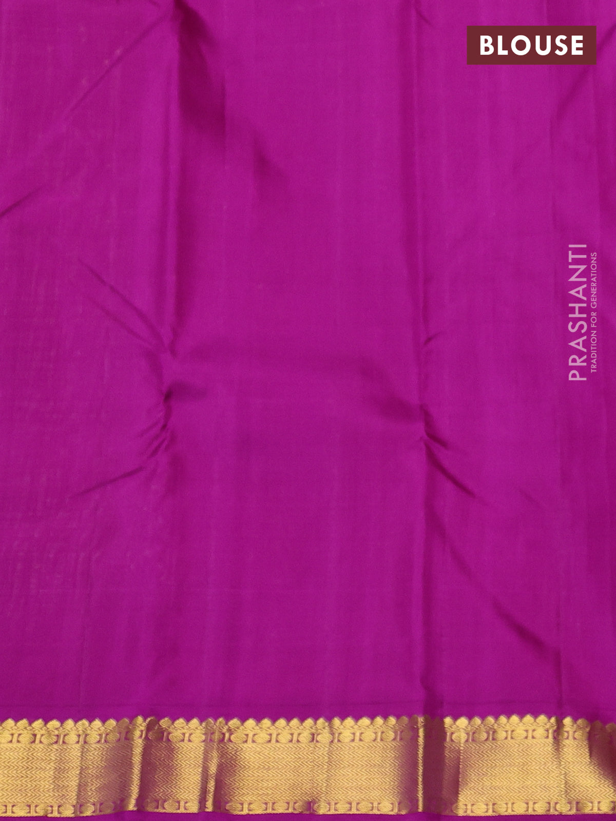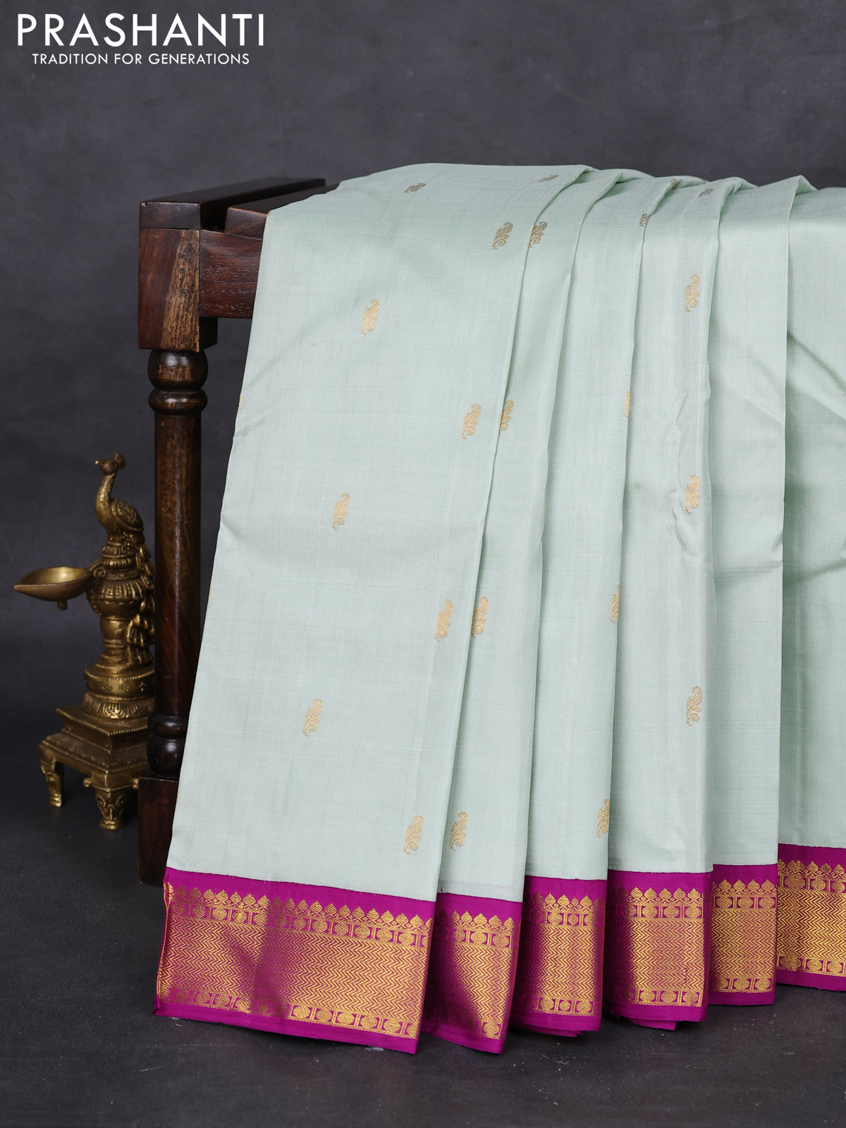 Pure kanchipuram silk saree teal shade and purple with zari woven buttas and zari woven korvai border