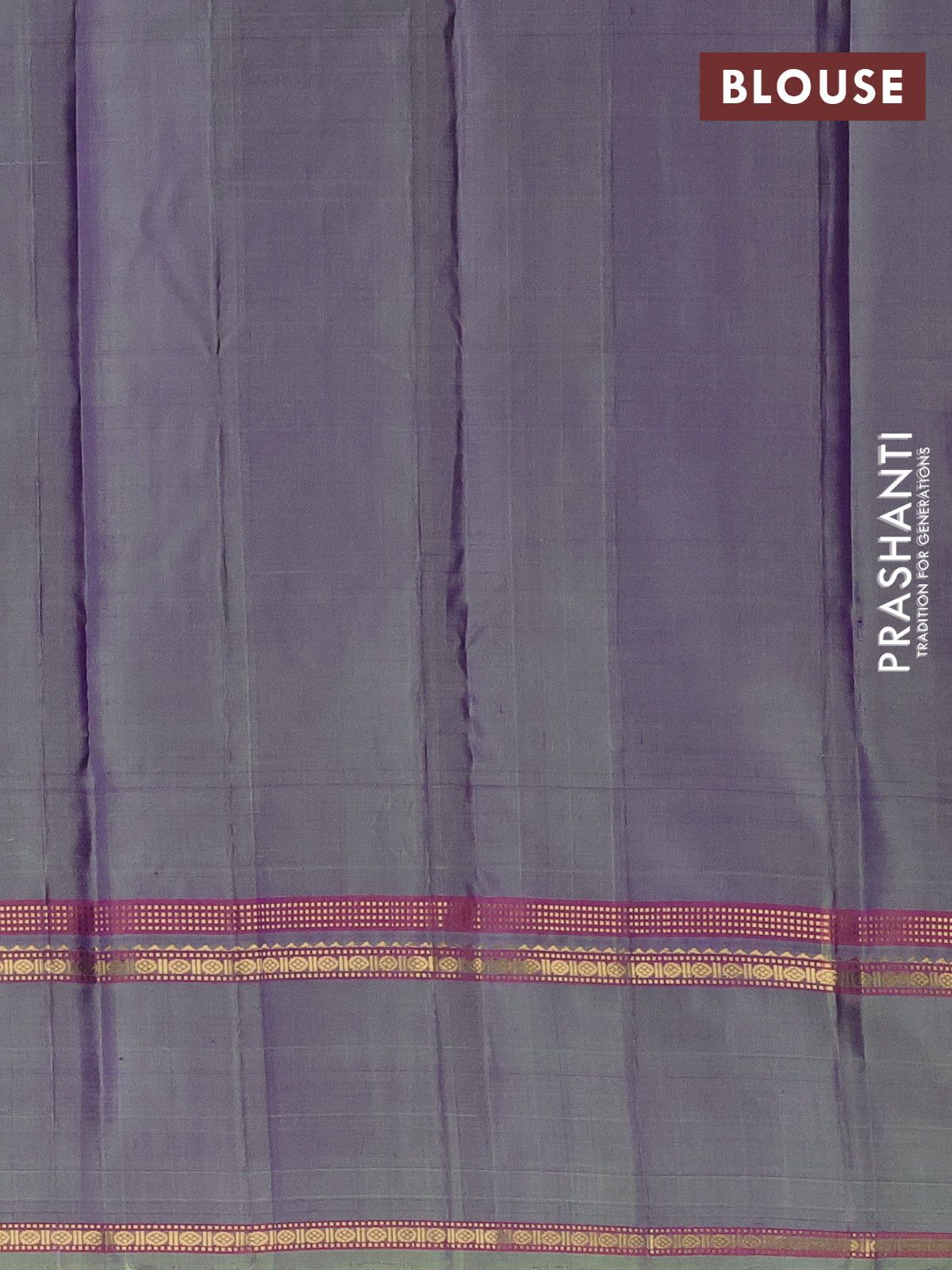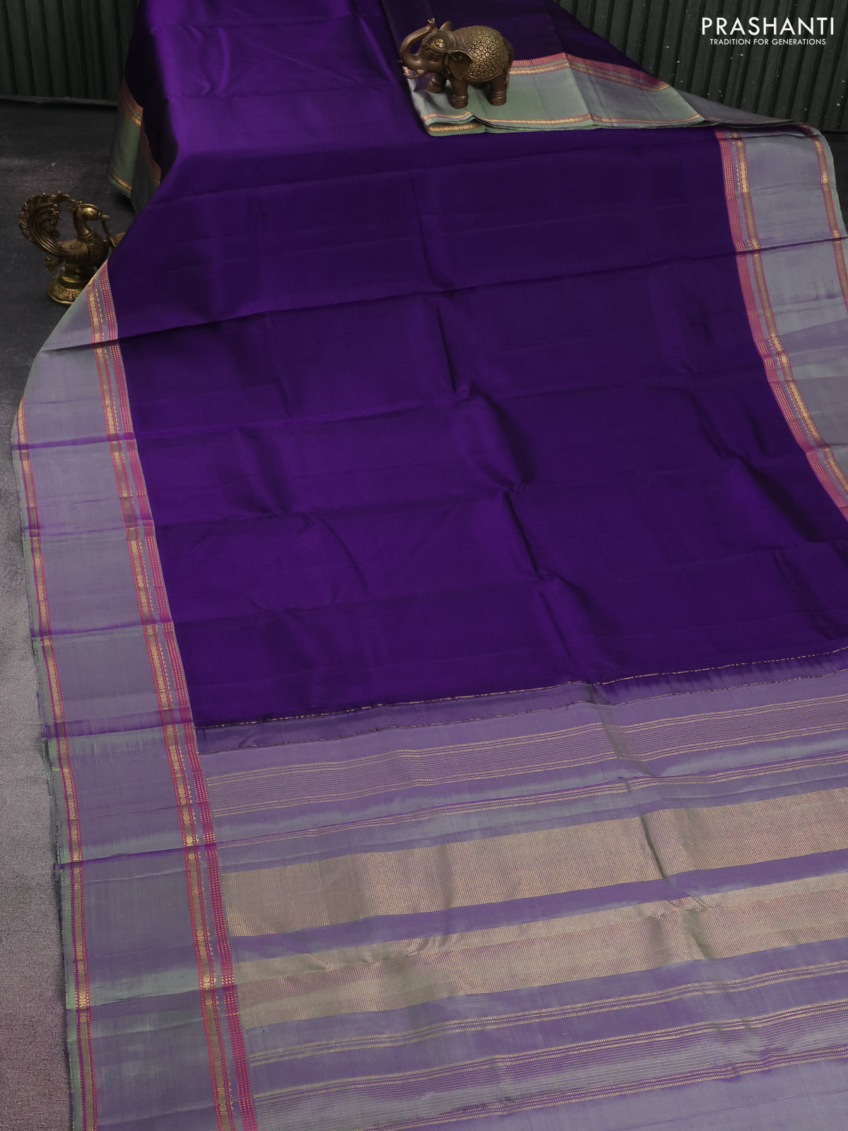 Pure kanchipuram silk saree violet and pastel green with plain body and rettapet zari woven border