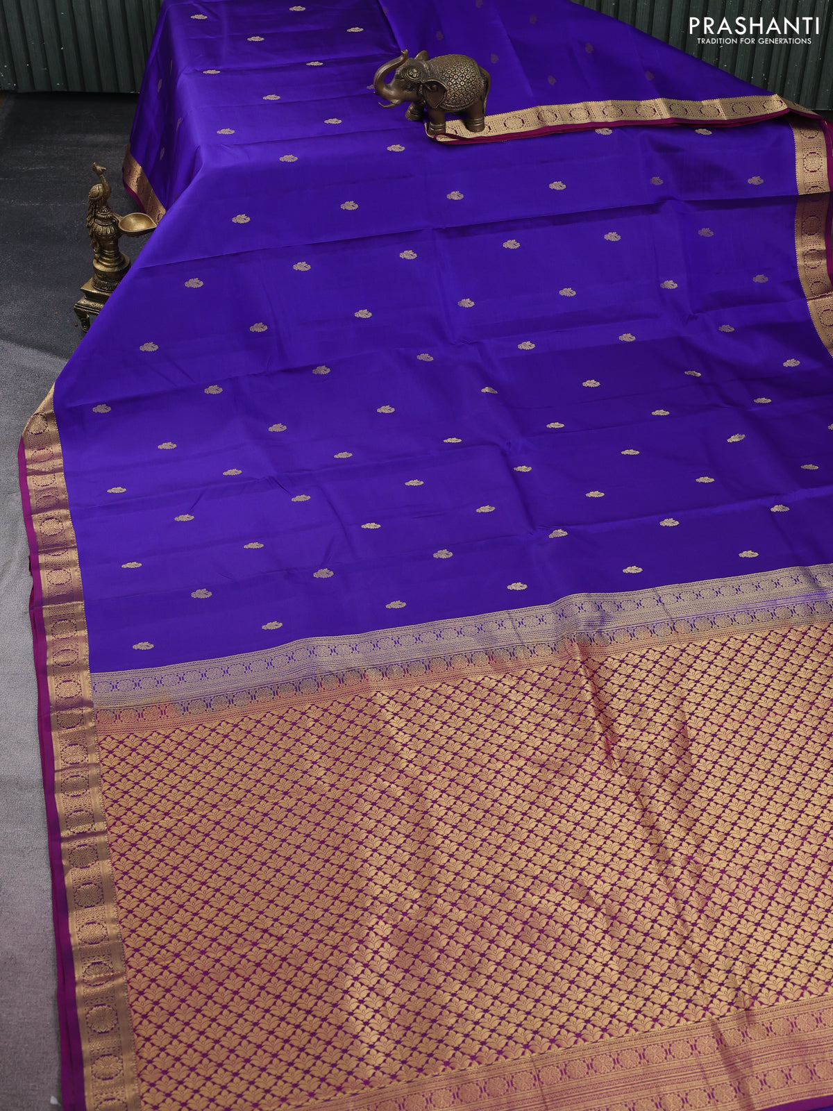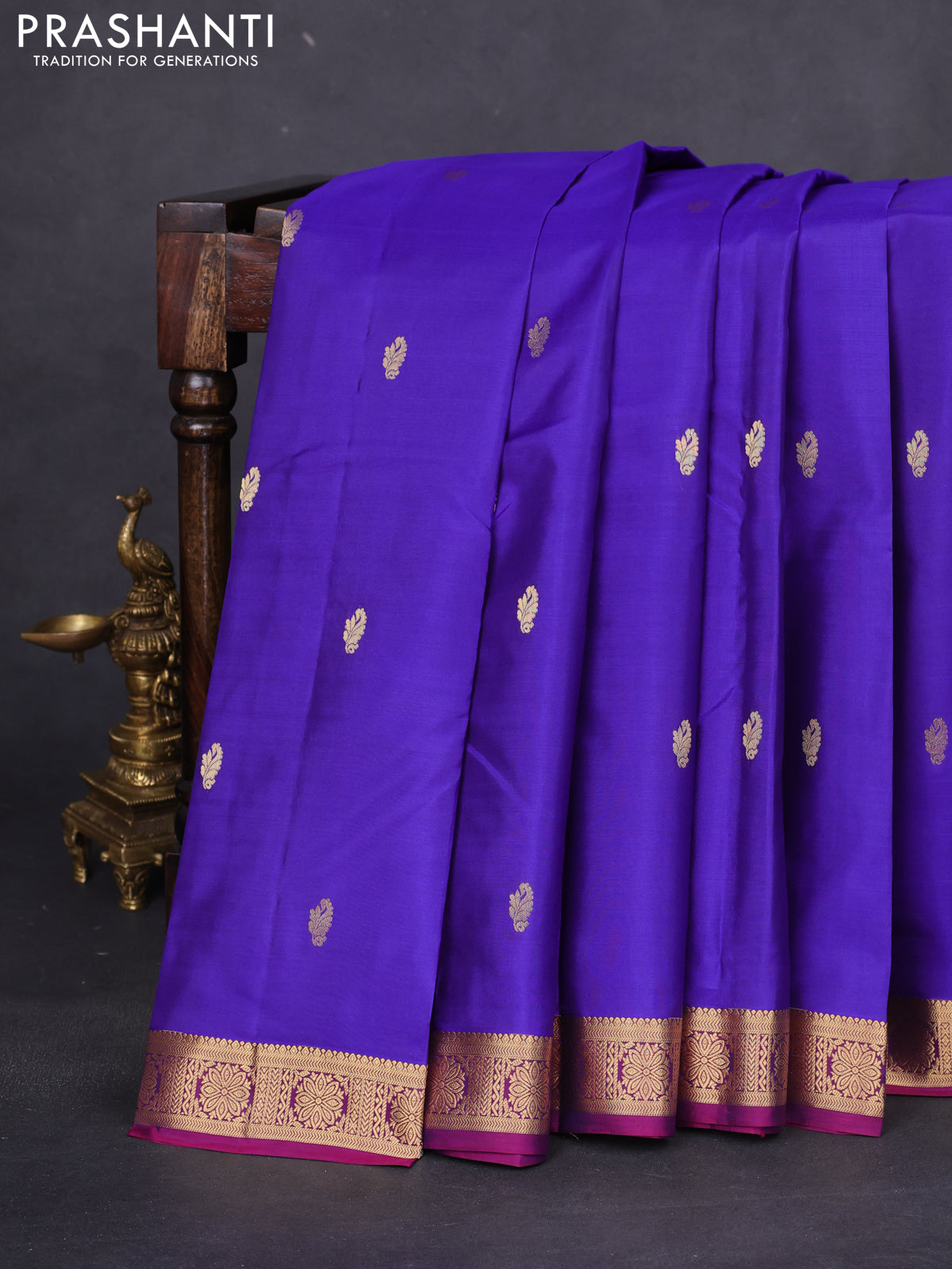 Pure kanchipuram silk saree violet and purple with zari woven buttas and zari woven border