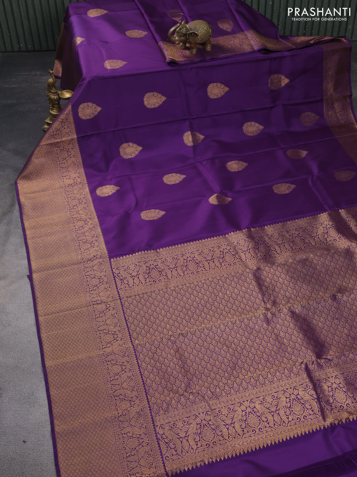 Pure kanchipuram silk saree violet with zari woven buttas and long zari woven border