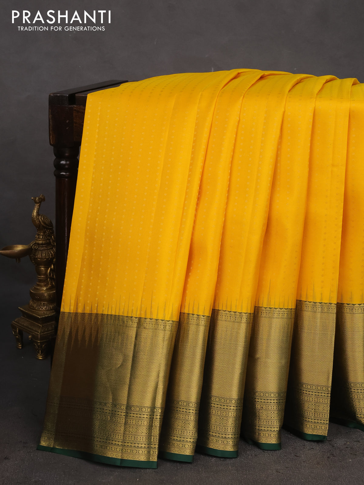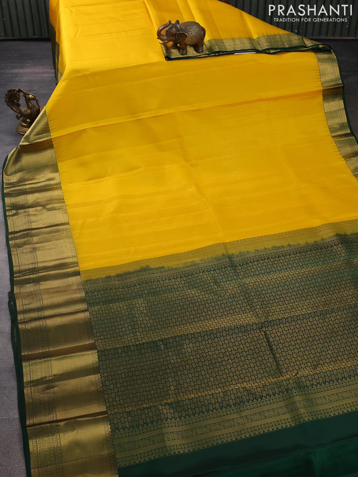 Pure kanchipuram silk saree yellow and green with allover zari woven 1000 buttas and zari woven border