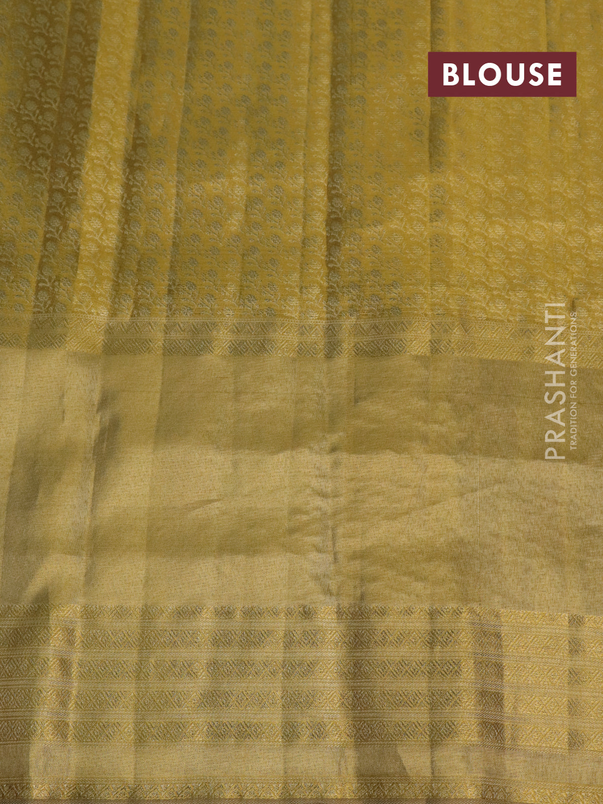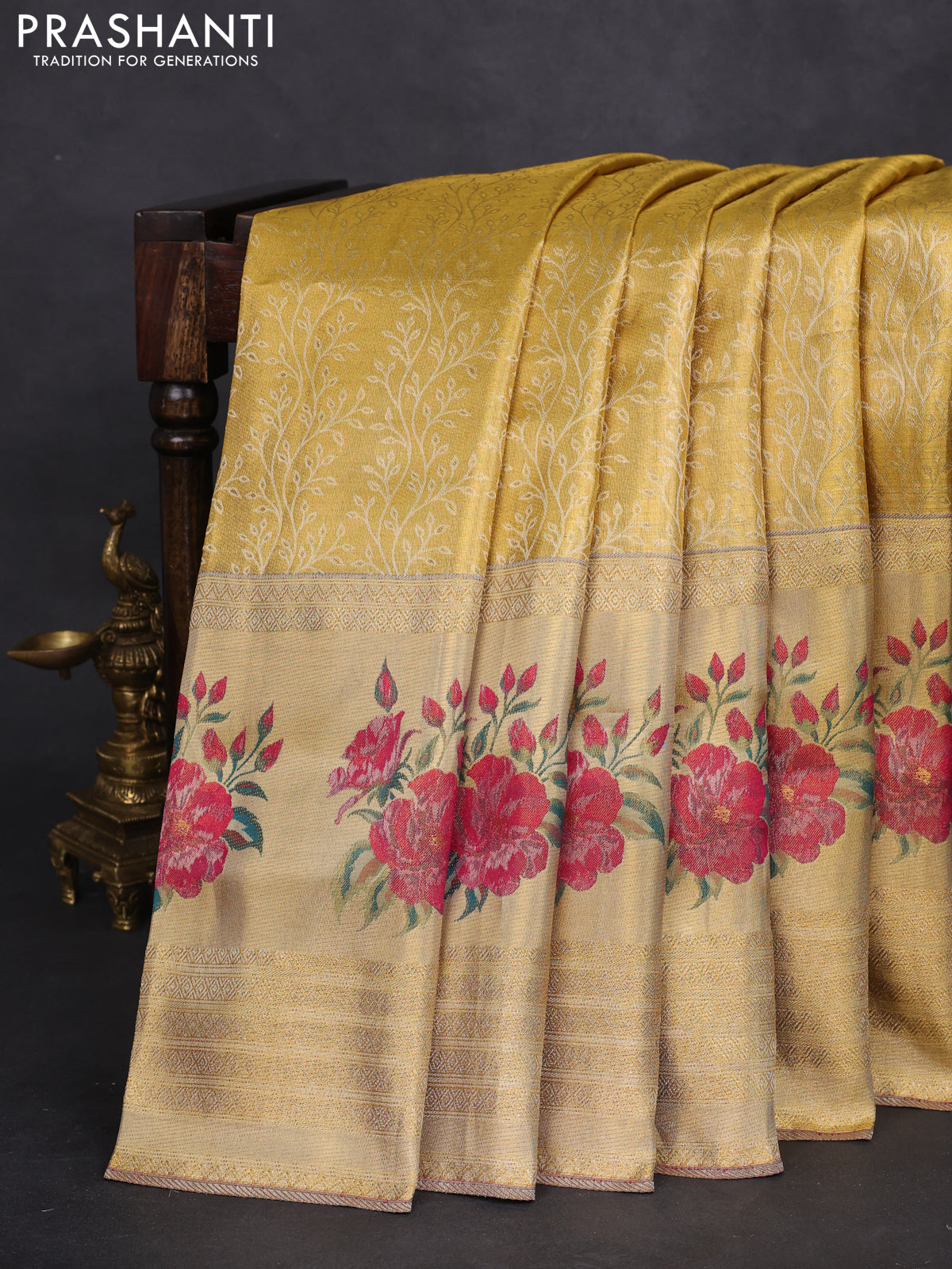 Pure kanchipuram tissue silk saree gold and pink with allover zari weaves and floral design butta border