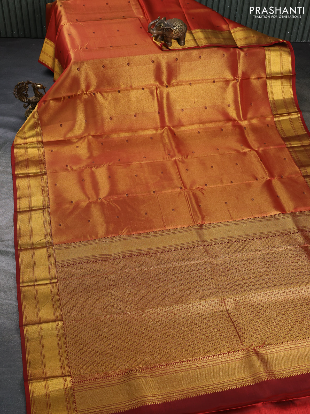Pure kanchipuram tissue silk saree red with allover zari woven brocade weaves and zari woven border