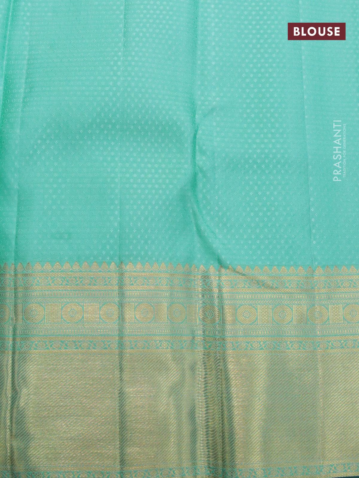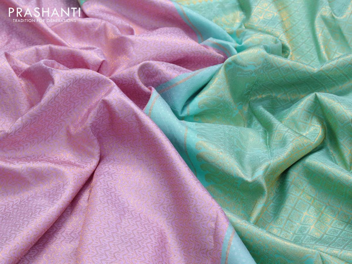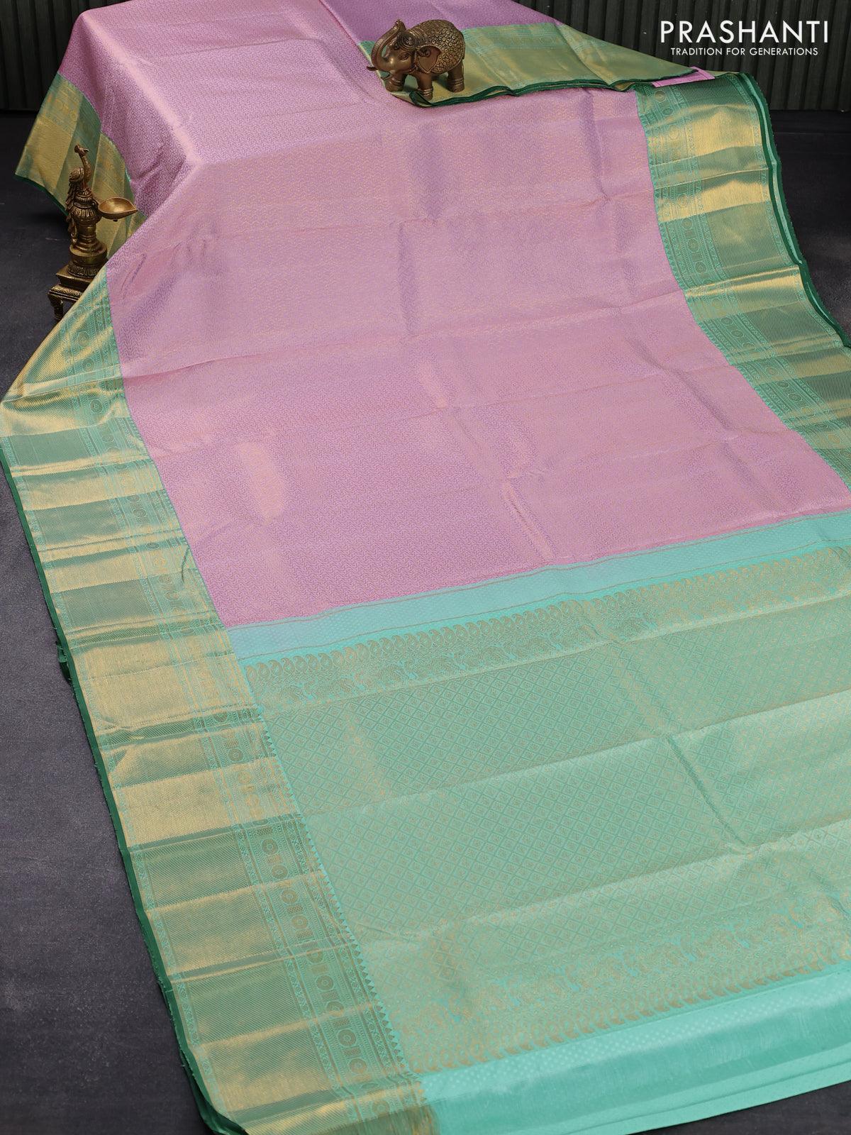 Pure kanjivaram silk saree lotus pink and teal blue with allover zari weaves and rich zari woven border