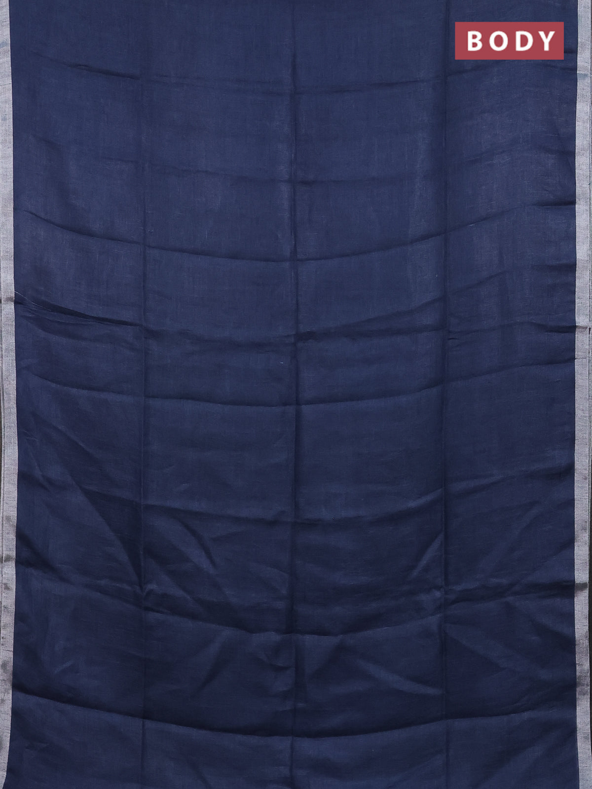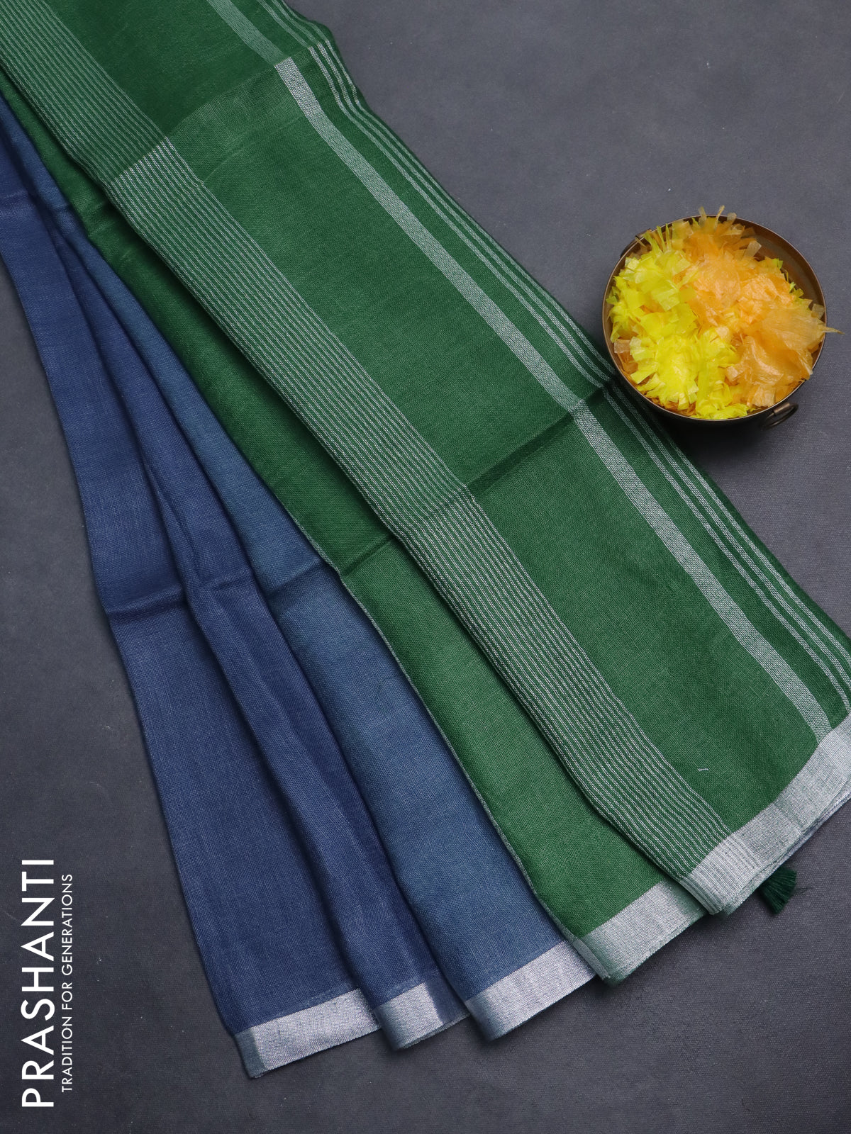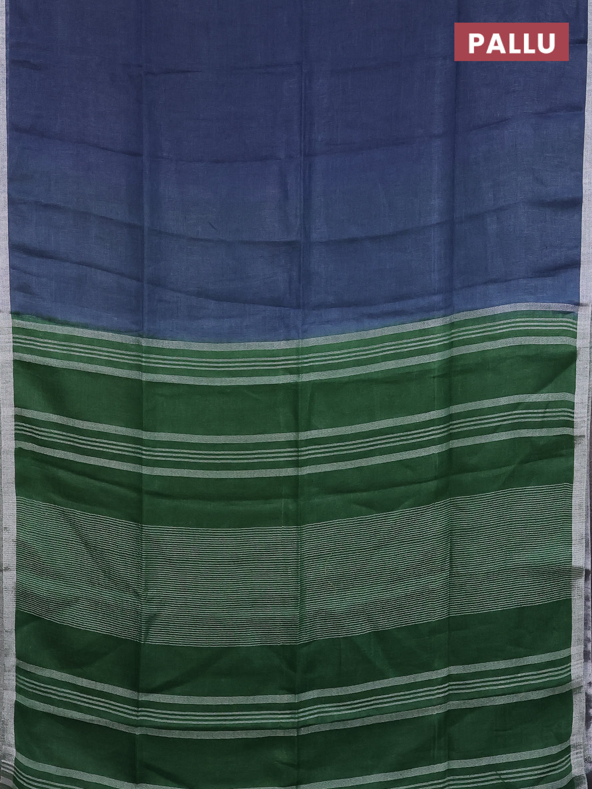 Pure linen saree bluish grey and green with plain body and silver zari woven border
