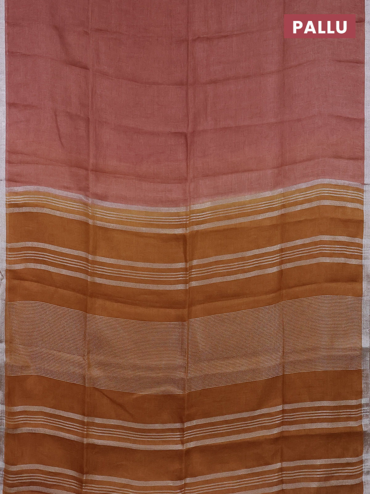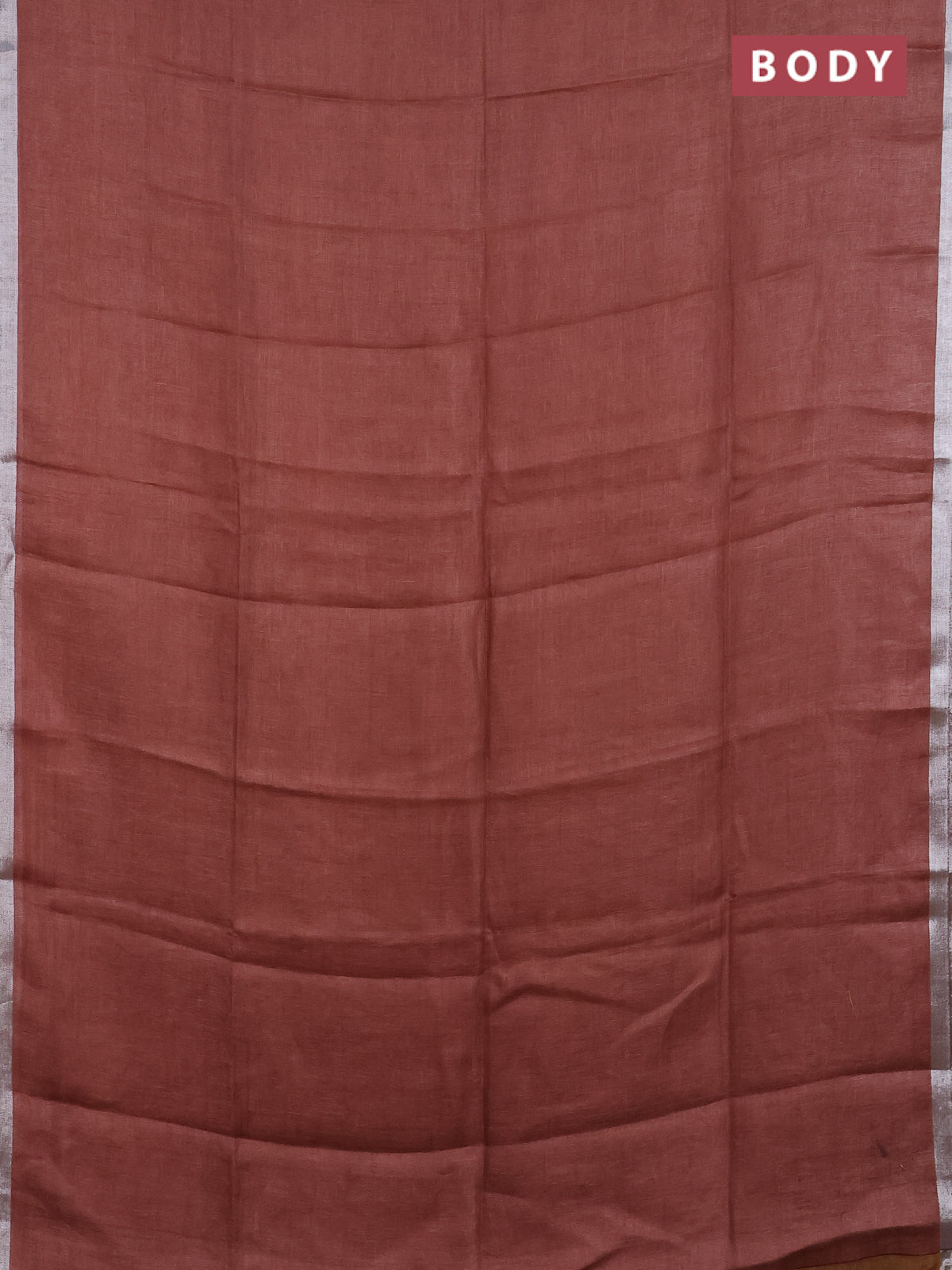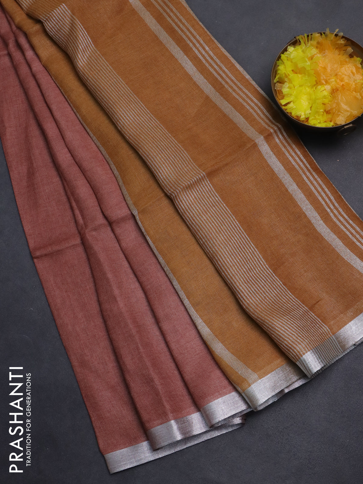 Pure linen saree rustic brown and dark mustard with plain body and silver zari woven border