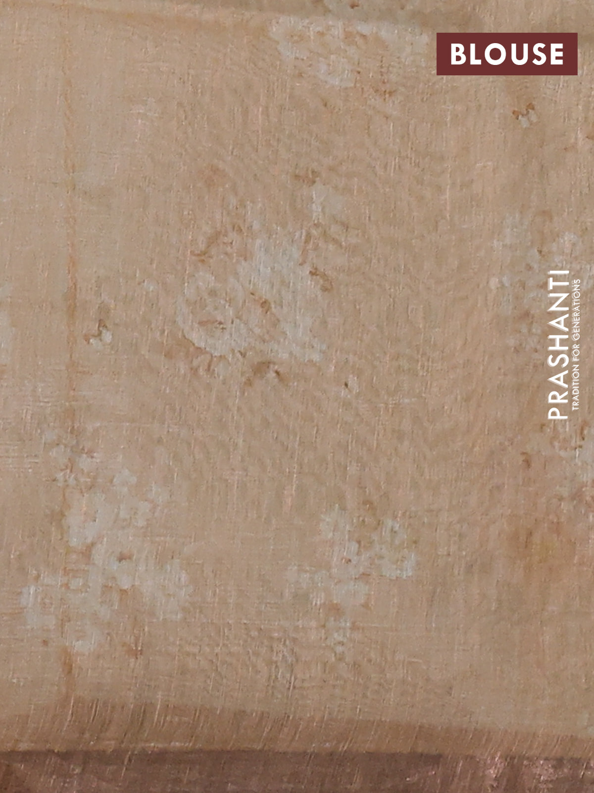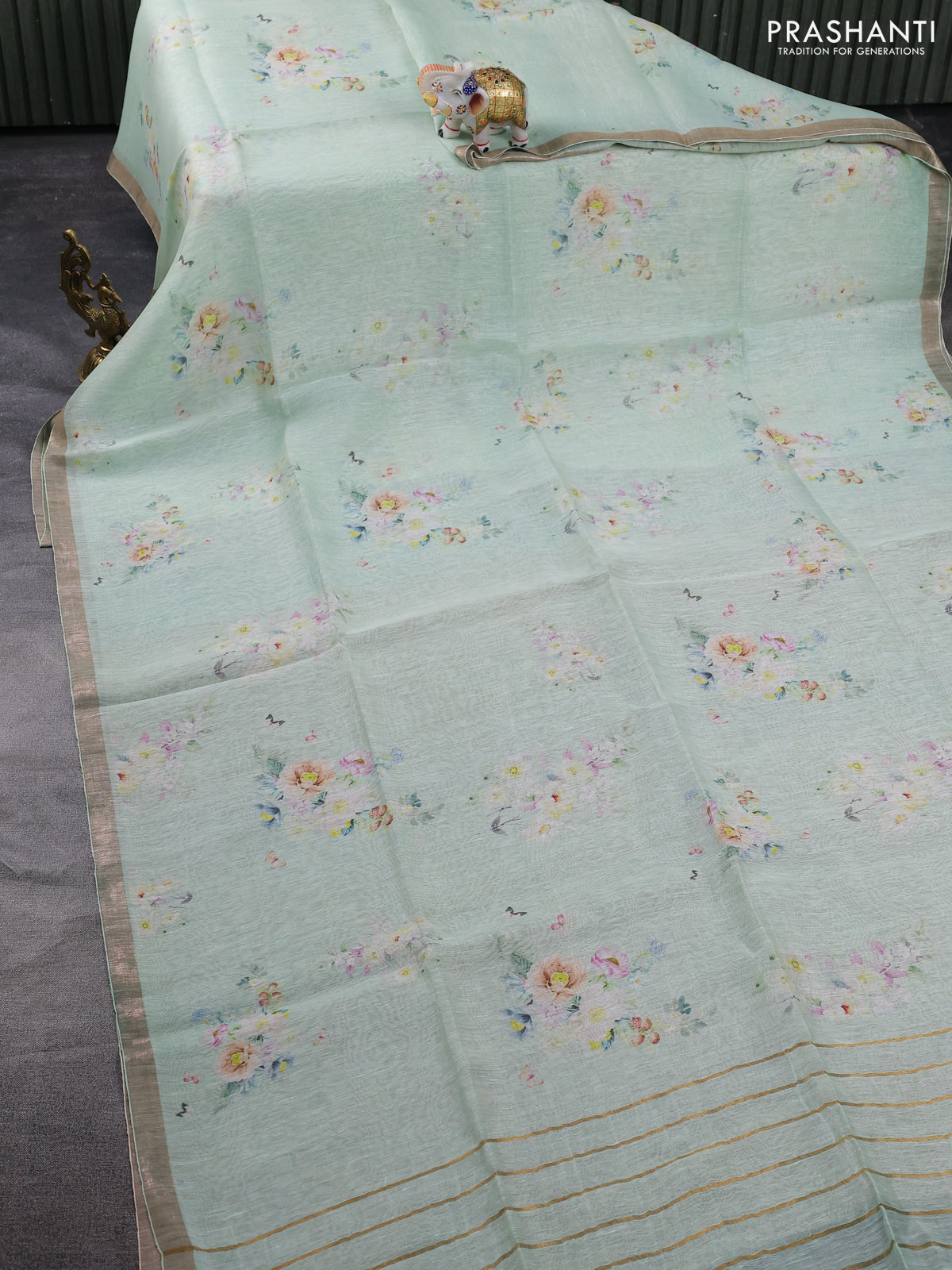 Pure linen silk saree teal shade and sandal with floral butta prints and small zari woven border