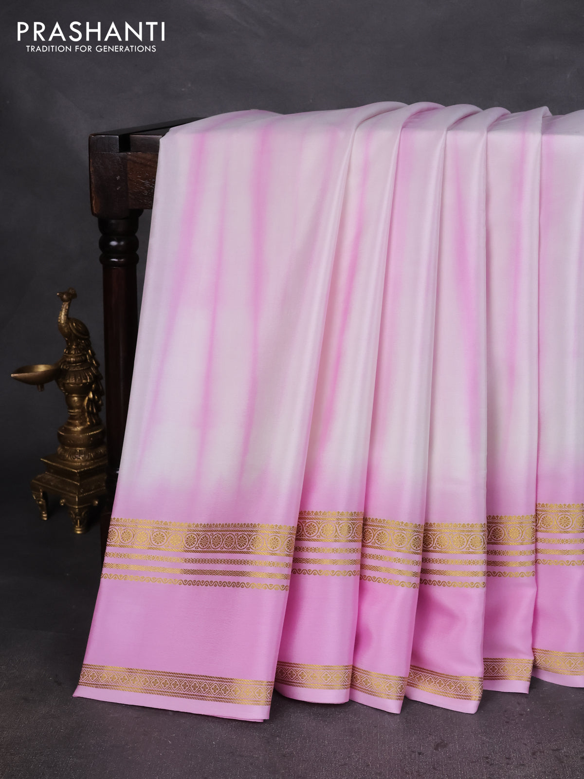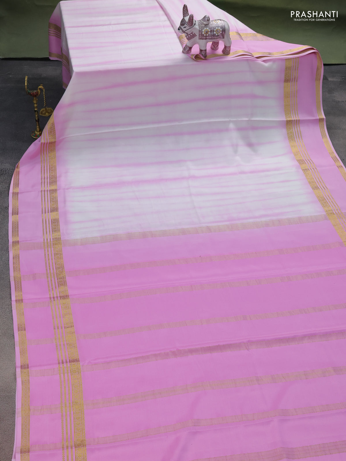 Pure mysore silk saree baby pink with allover shibori prints and rettapet zari woven border