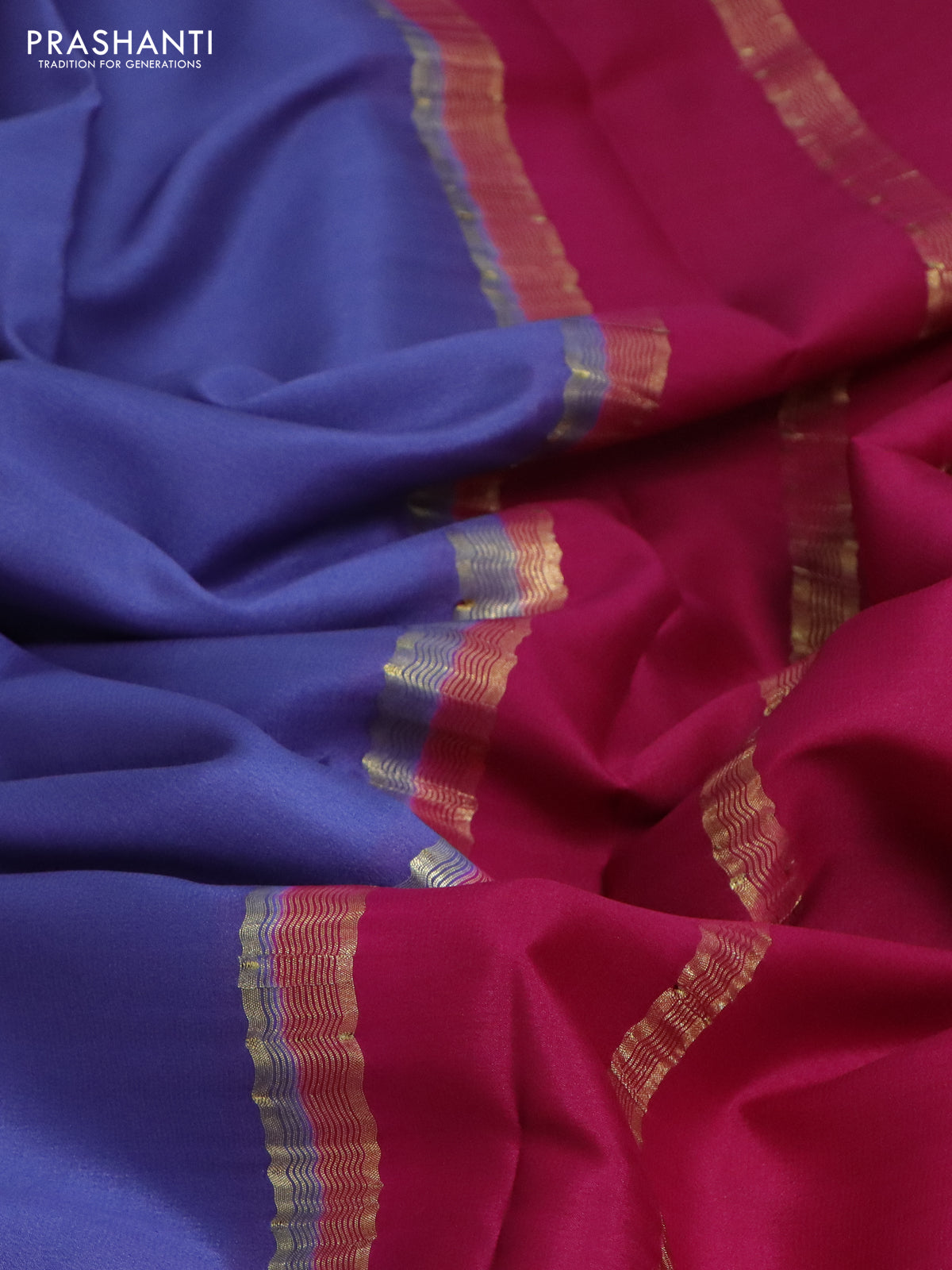 Pure mysore silk saree blue and pink with plain body and zari woven border