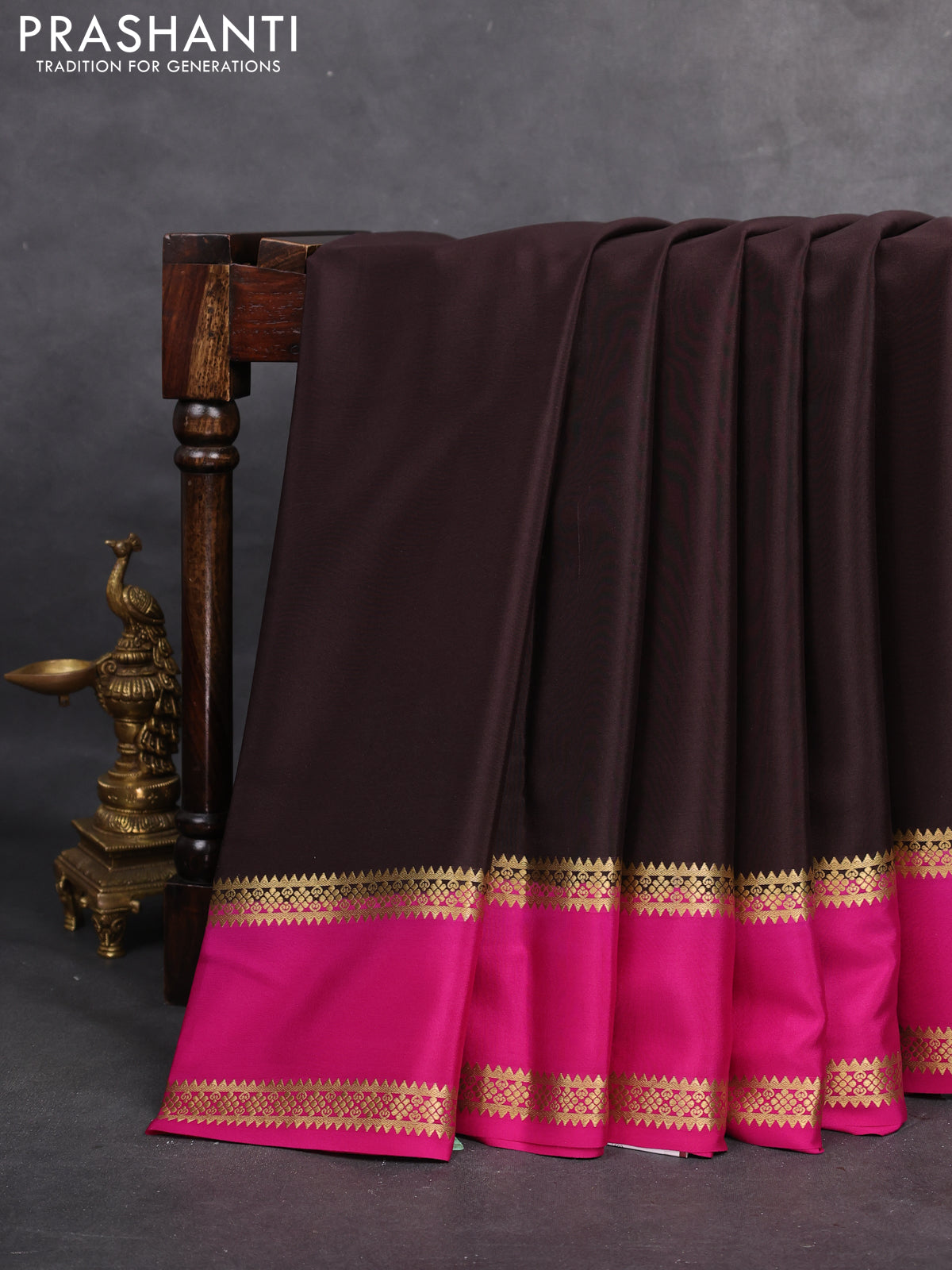 Pure mysore silk saree coffee brown and pink with plain body and rettapet zari woven border