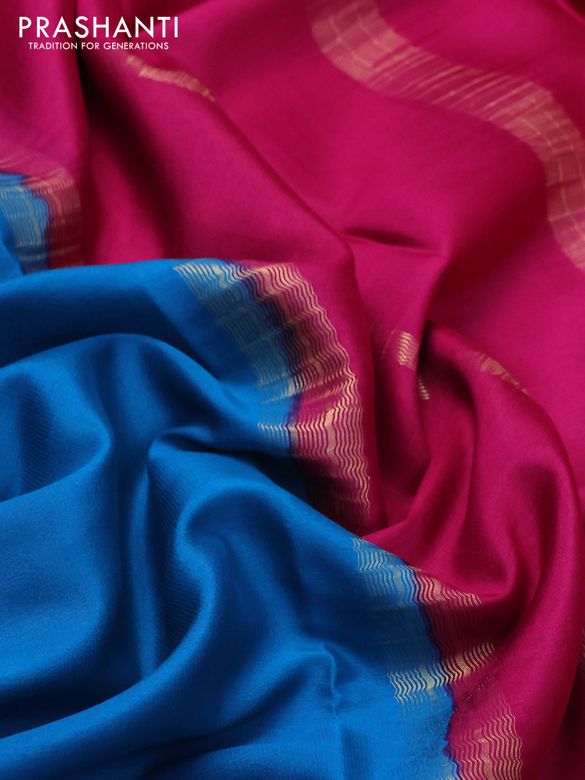 Pure mysore silk saree cs blue and pink with plain body and zari woven border