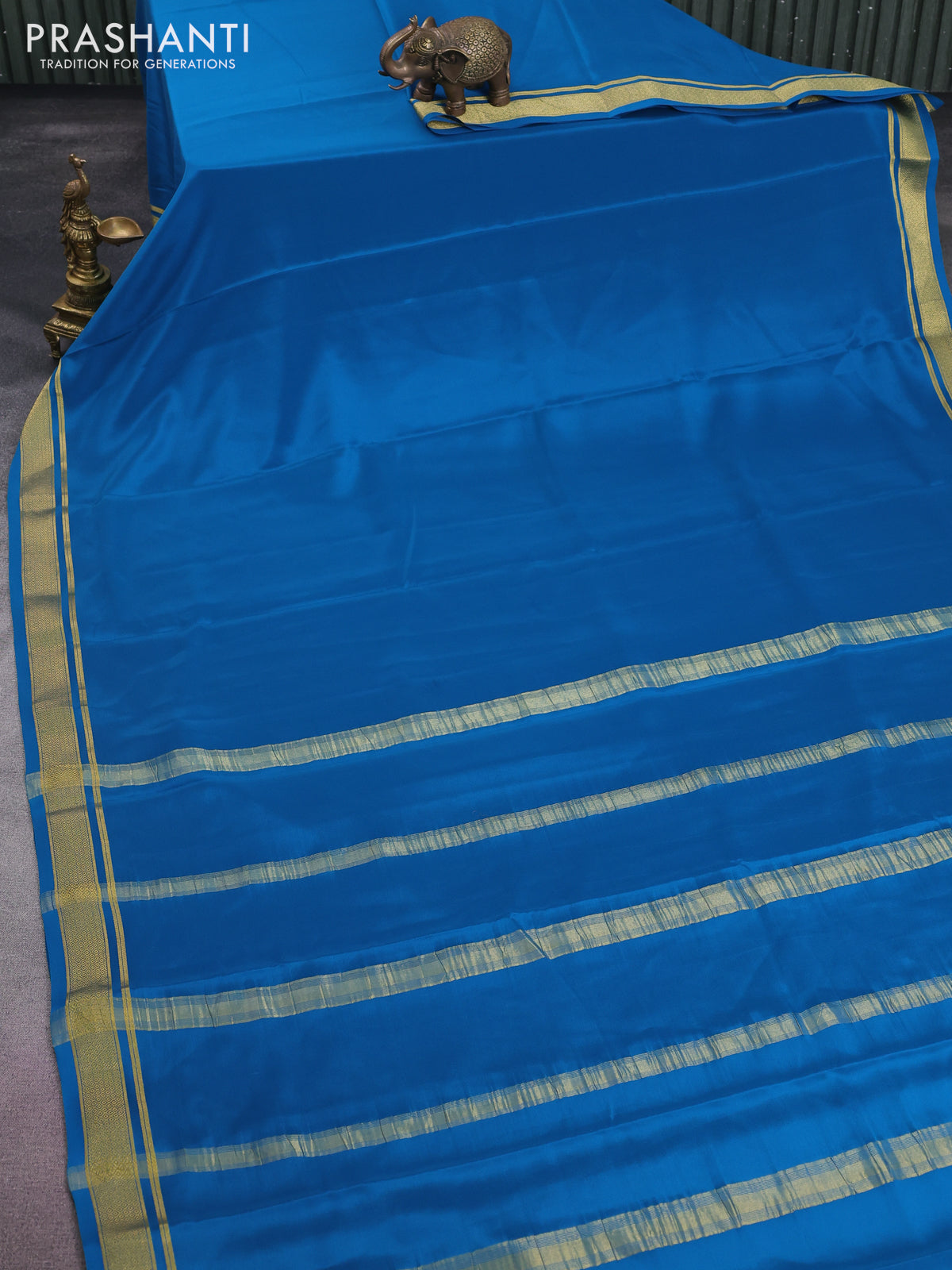 Pure mysore silk saree cs blue with plain body and zari woven border