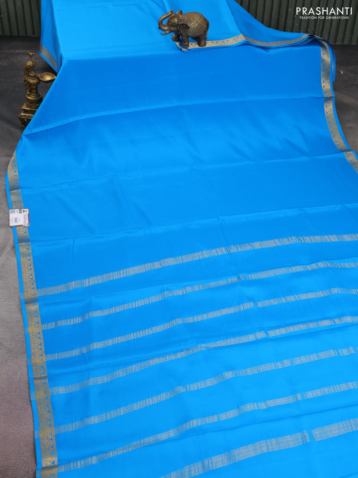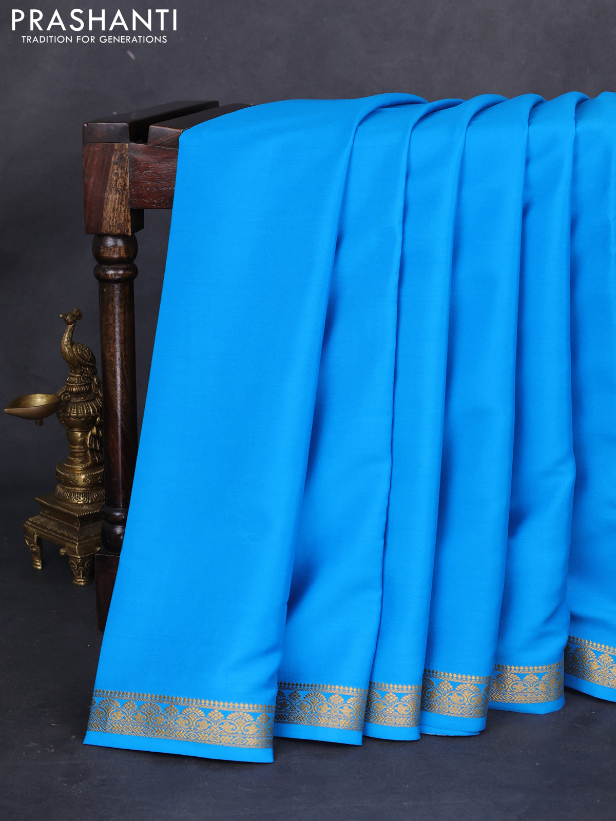 Pure mysore silk saree cs blue with plain body and zari woven border