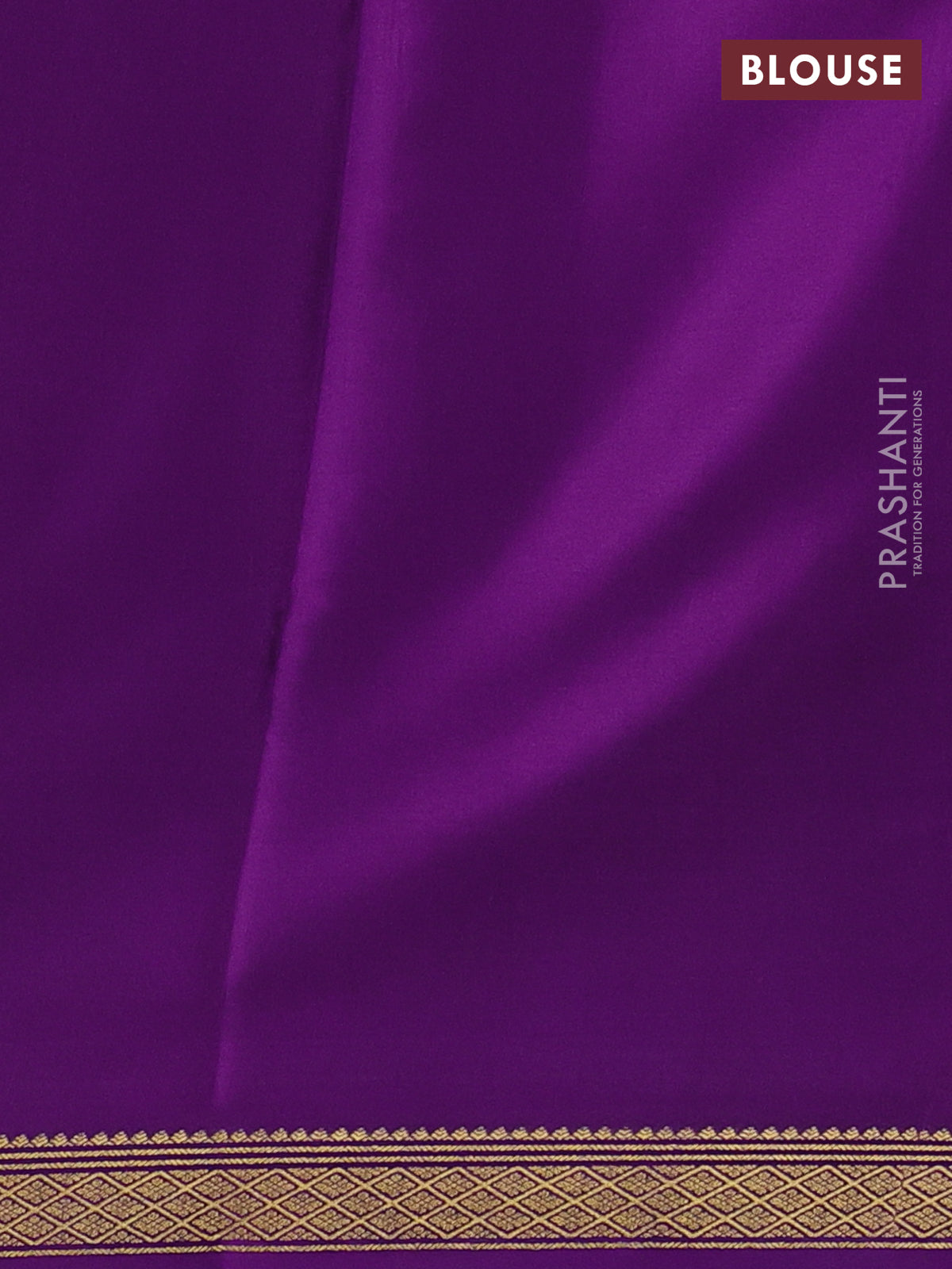 Pure mysore silk saree dark gren and purple with plain body and zari woven border