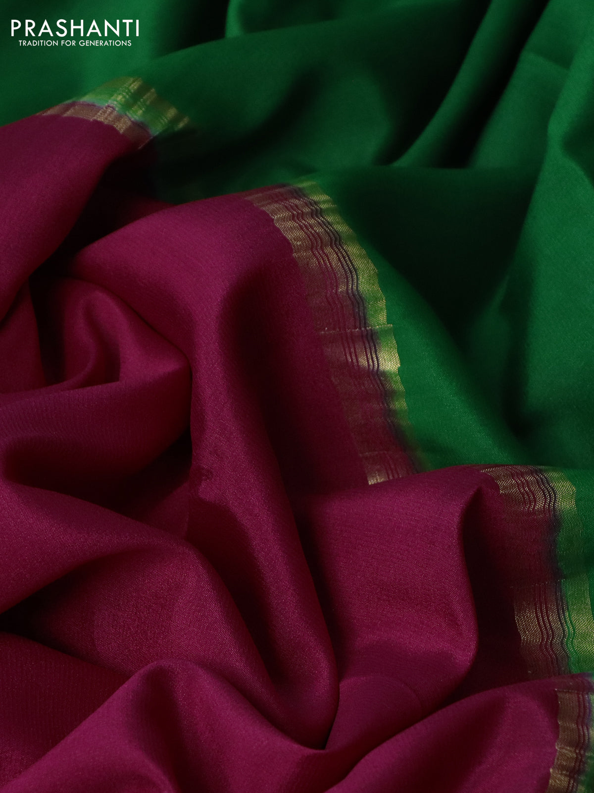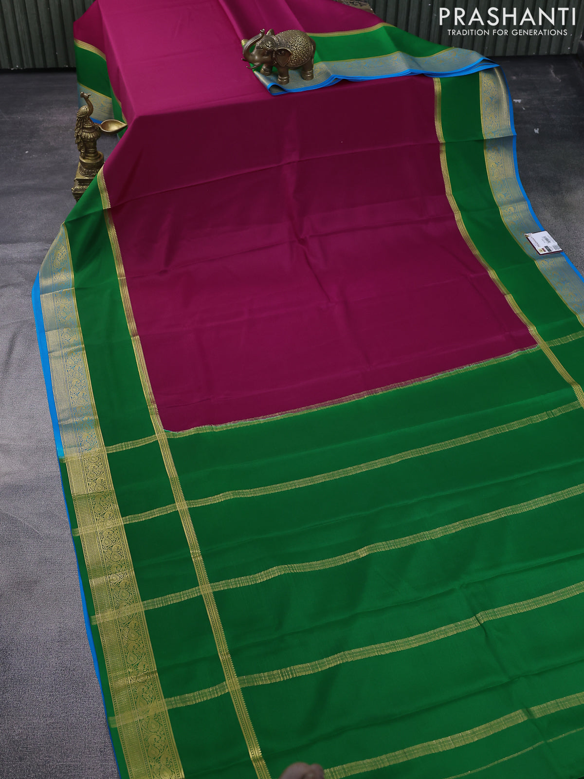 Pure mysore silk saree dark pink and green cs blue with plain body and long rettapet zari woven border
