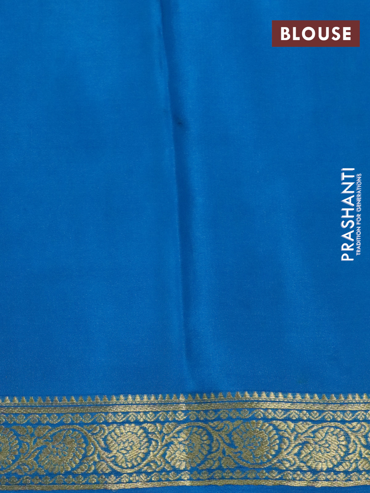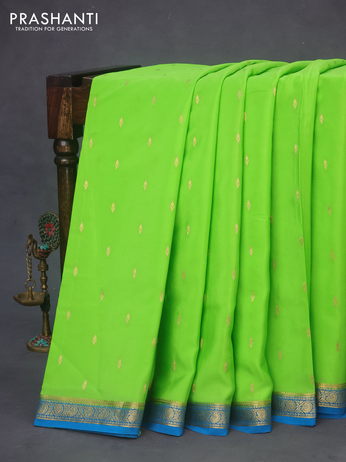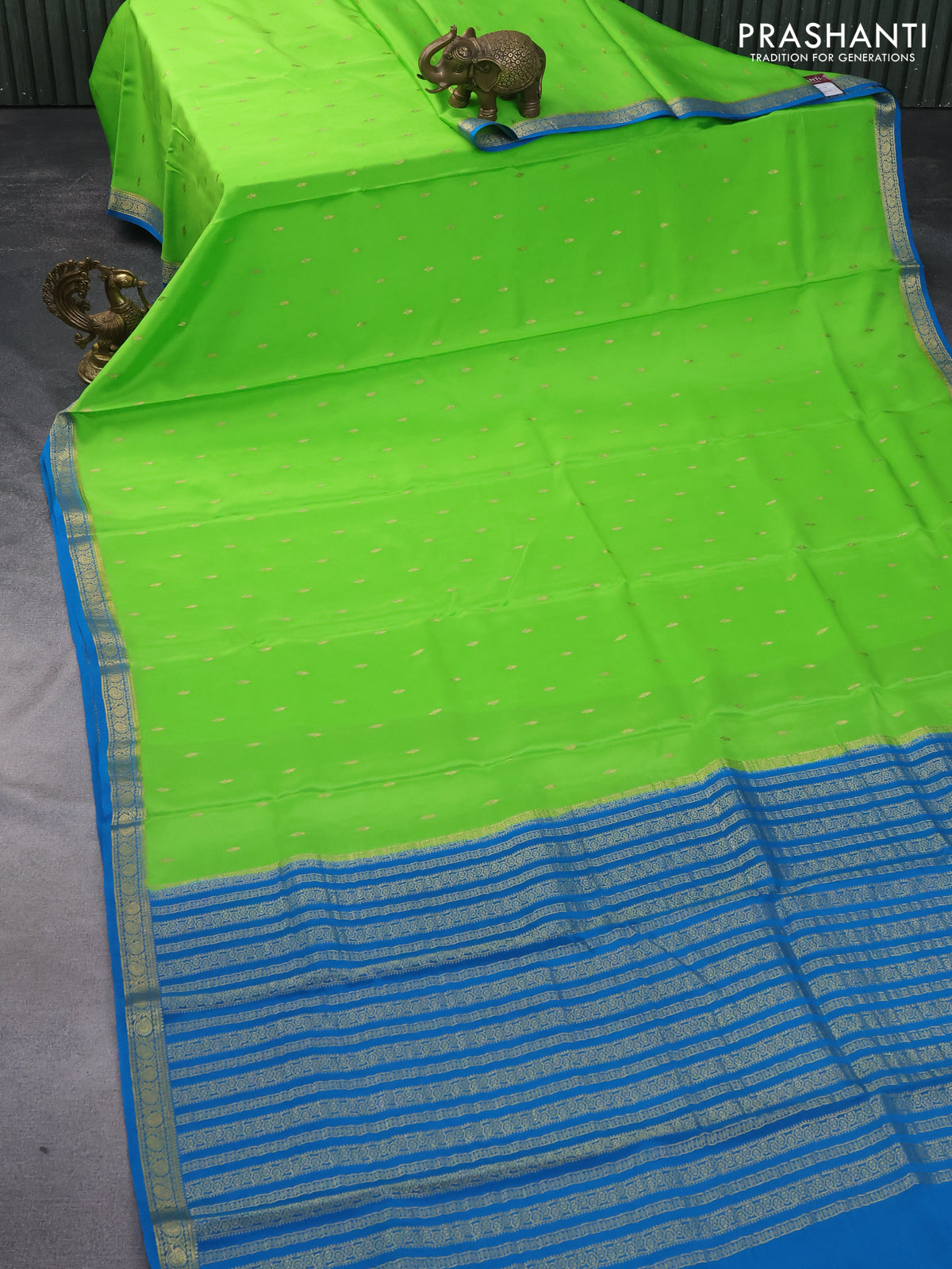 Pure mysore silk saree flourescent green and blue with zari woven buttas and zari woven border