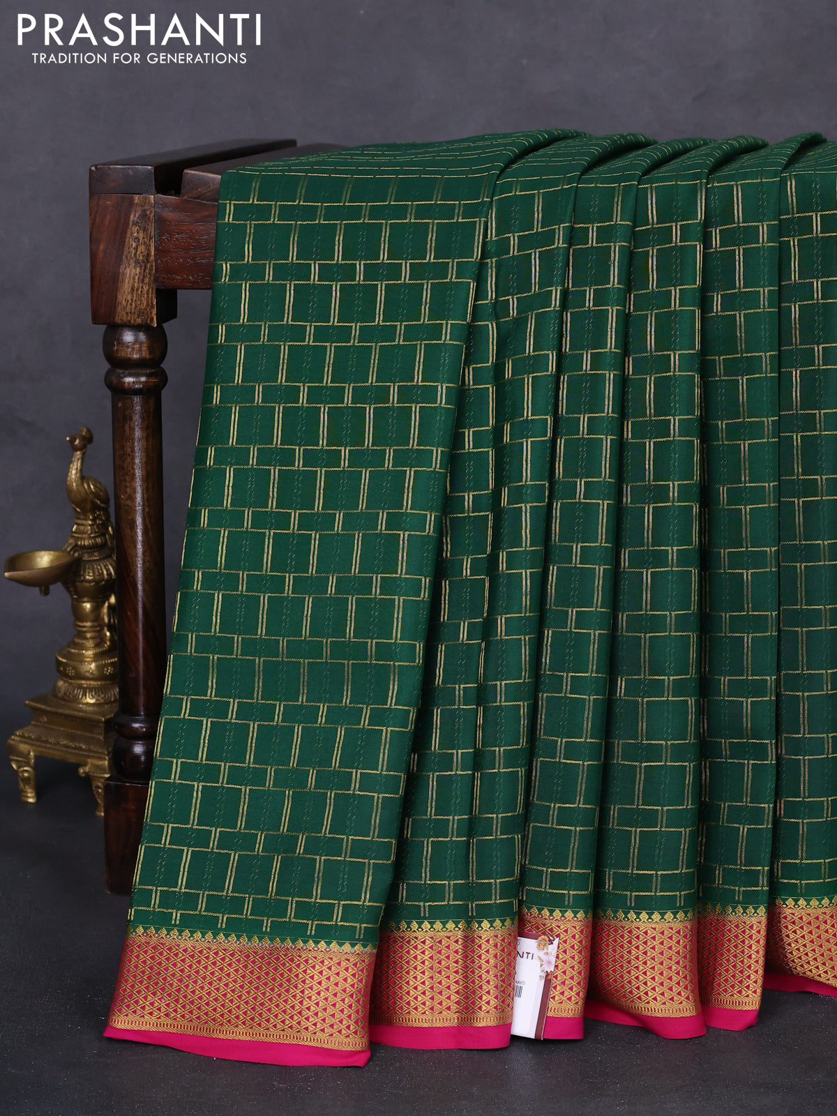 Pure mysore silk saree green and pink with allover zari checked pattern and zari woven border
