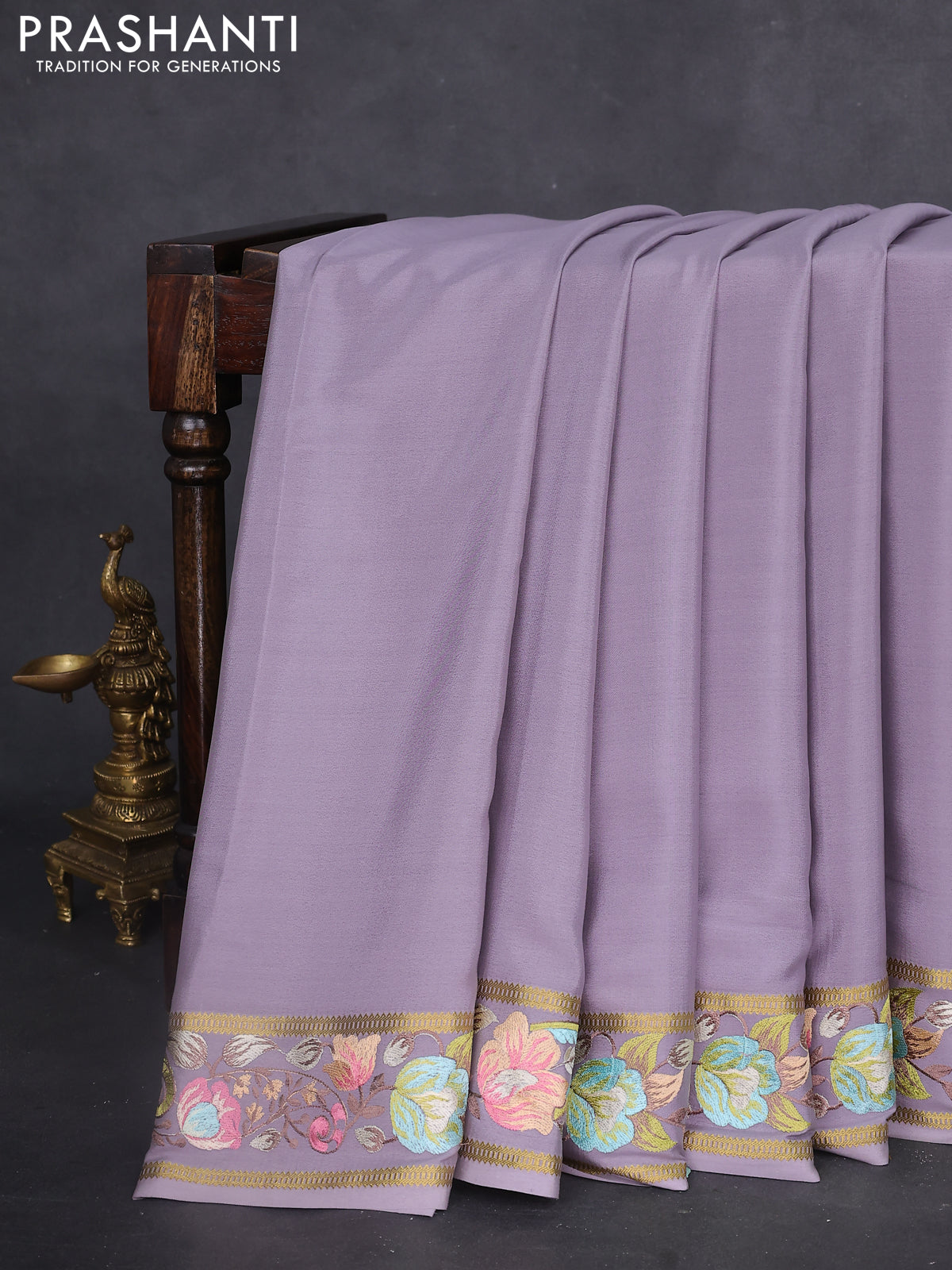 Pure mysore silk saree grey with plain body and embroidered zari border