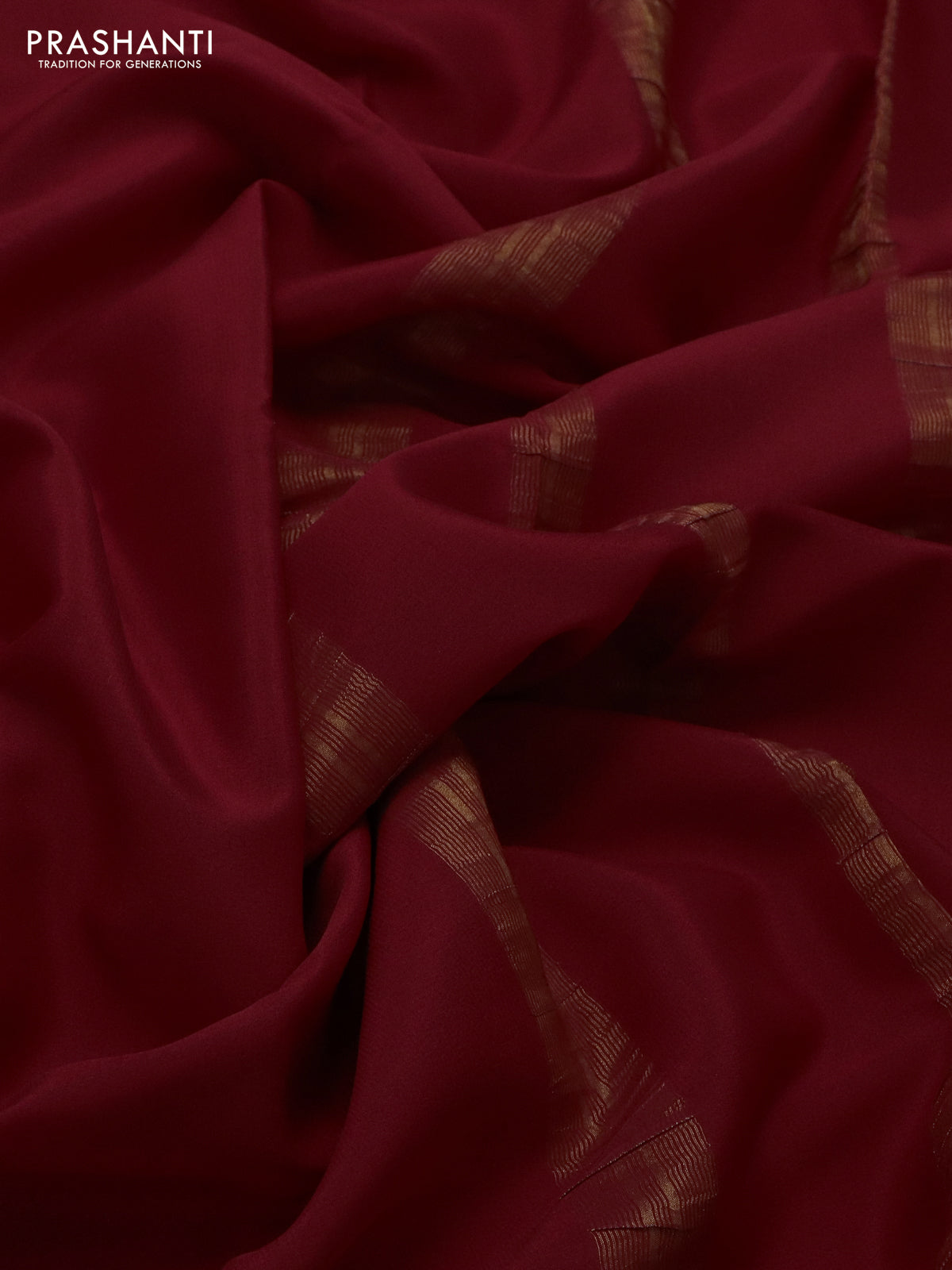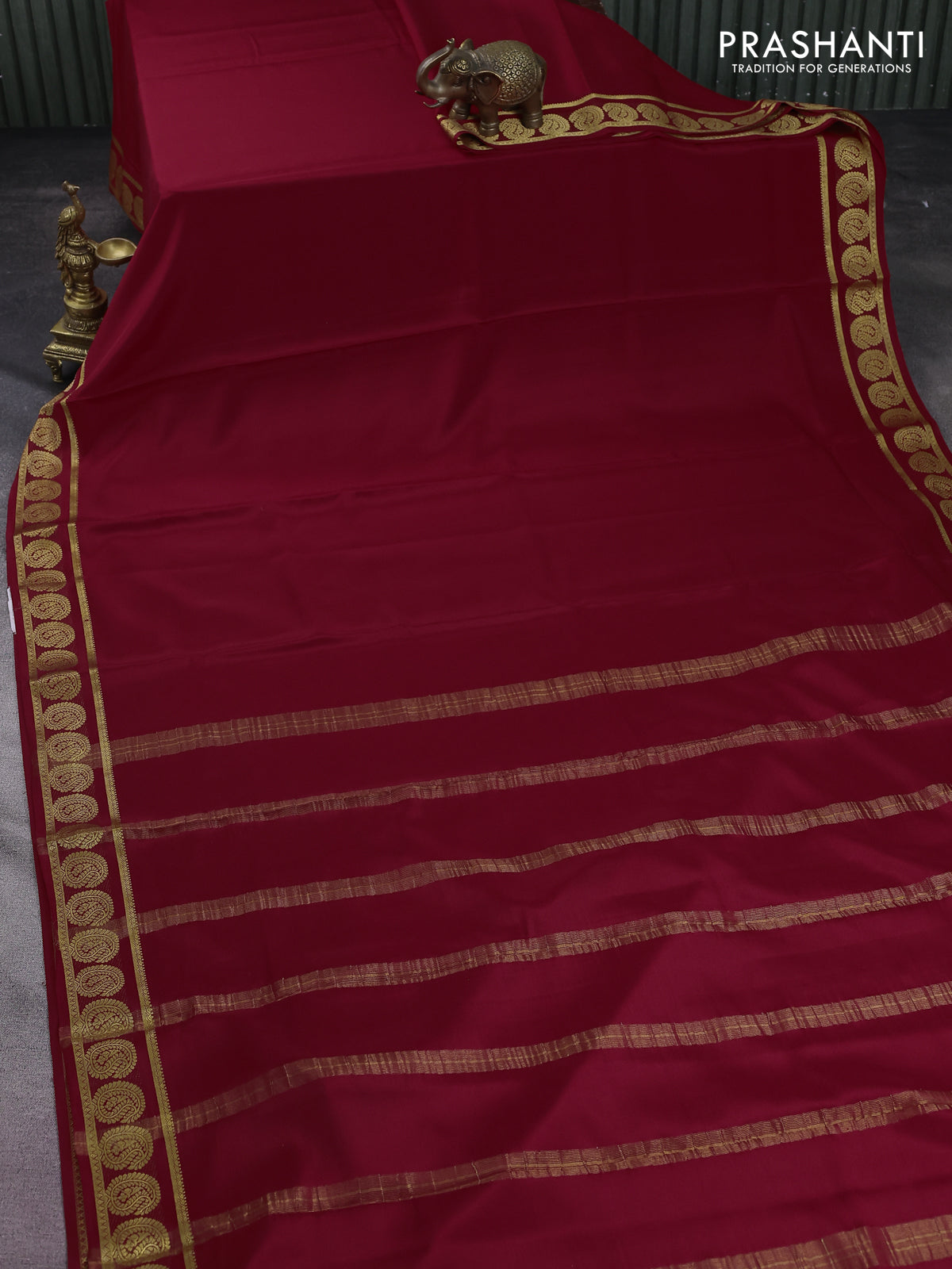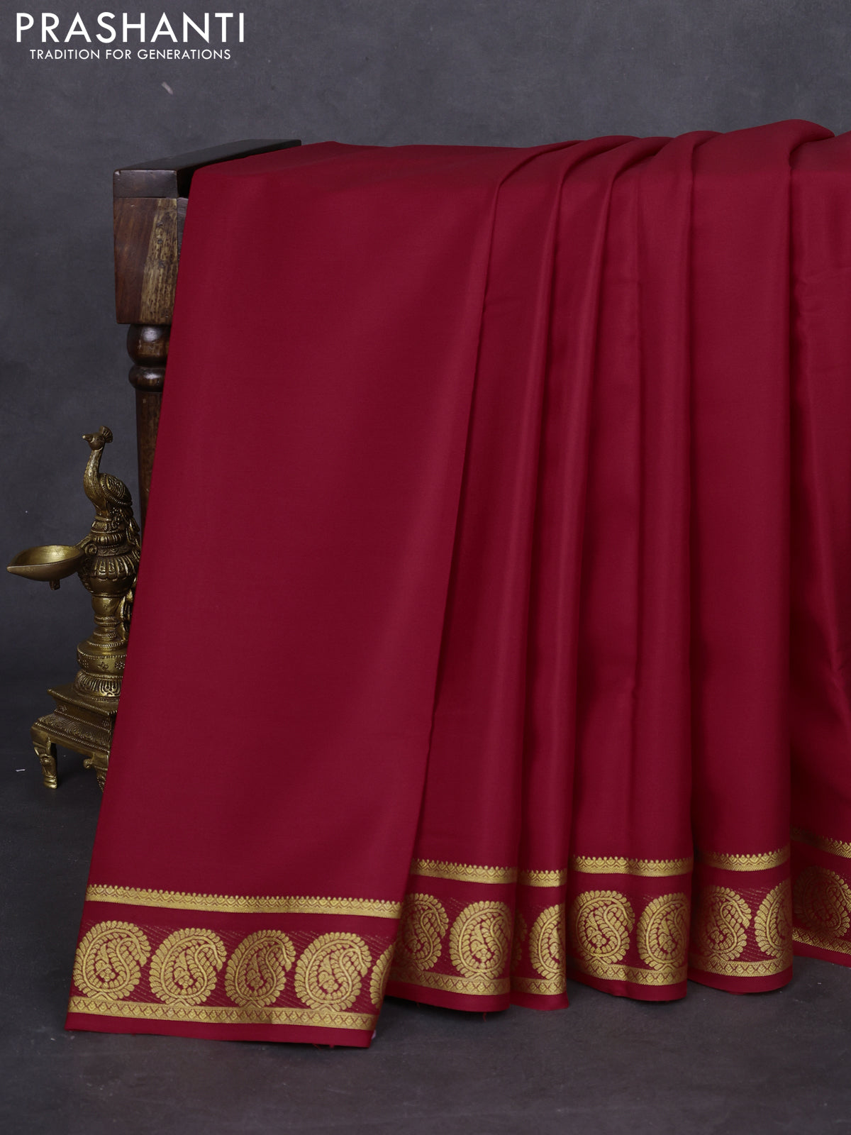 Pure mysore silk saree kumkum red with plain body and paisley zari woven border