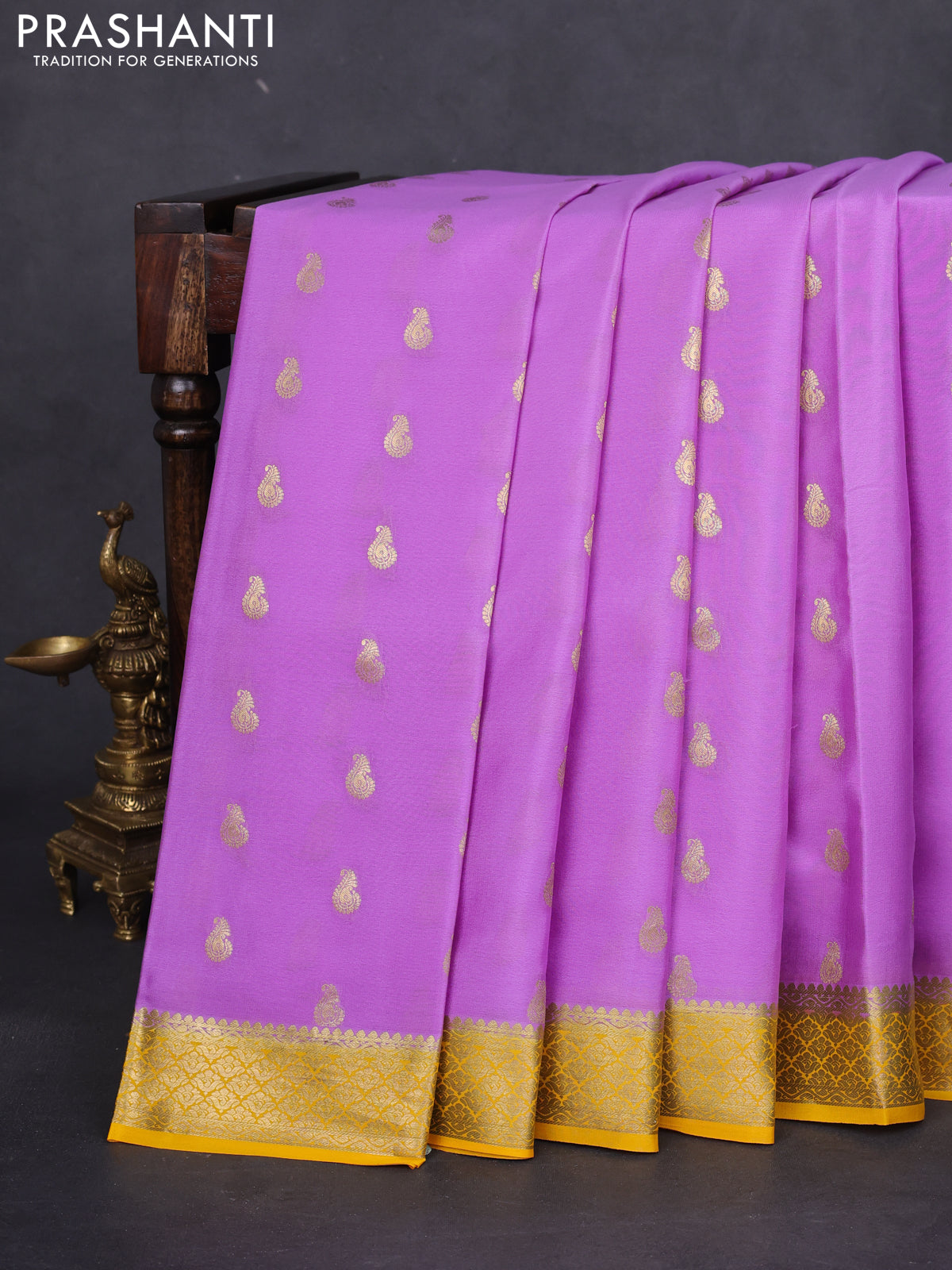 Pure mysore silk saree lavender and yellow with allover zari woven buttas and zari woven border
