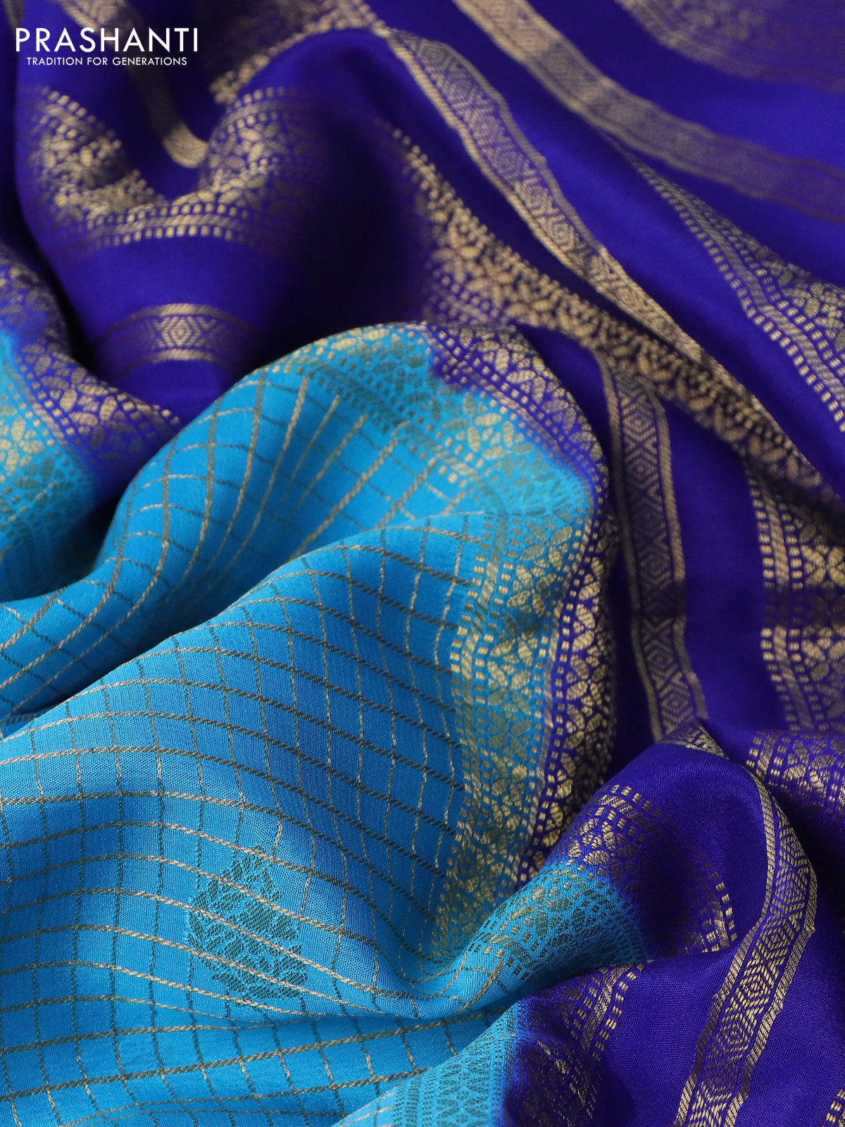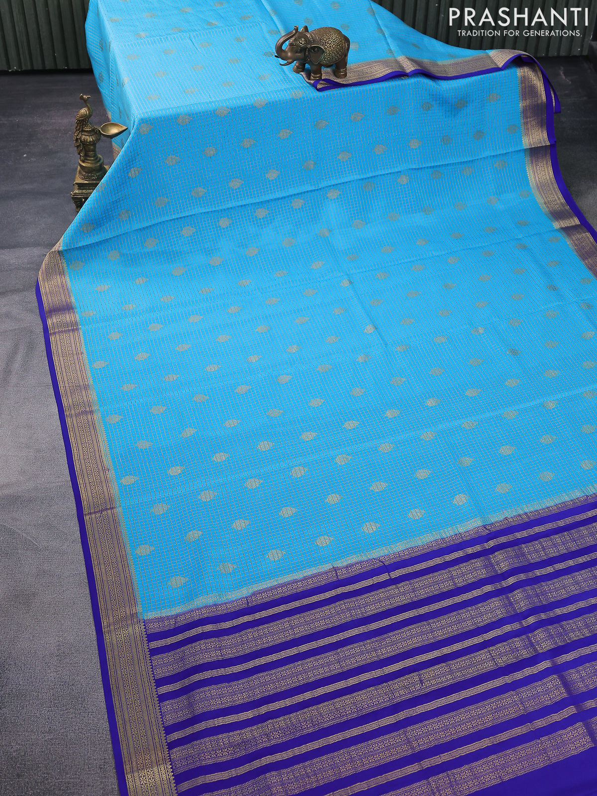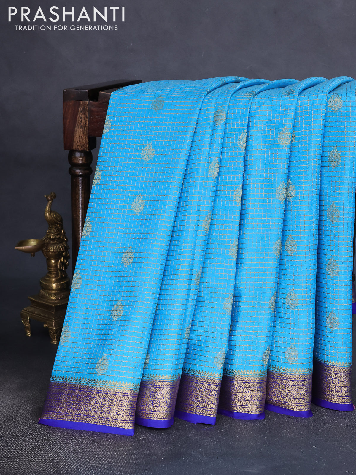 Pure mysore silk saree light blue and blue with allover zari checks & buttas and zari woven border