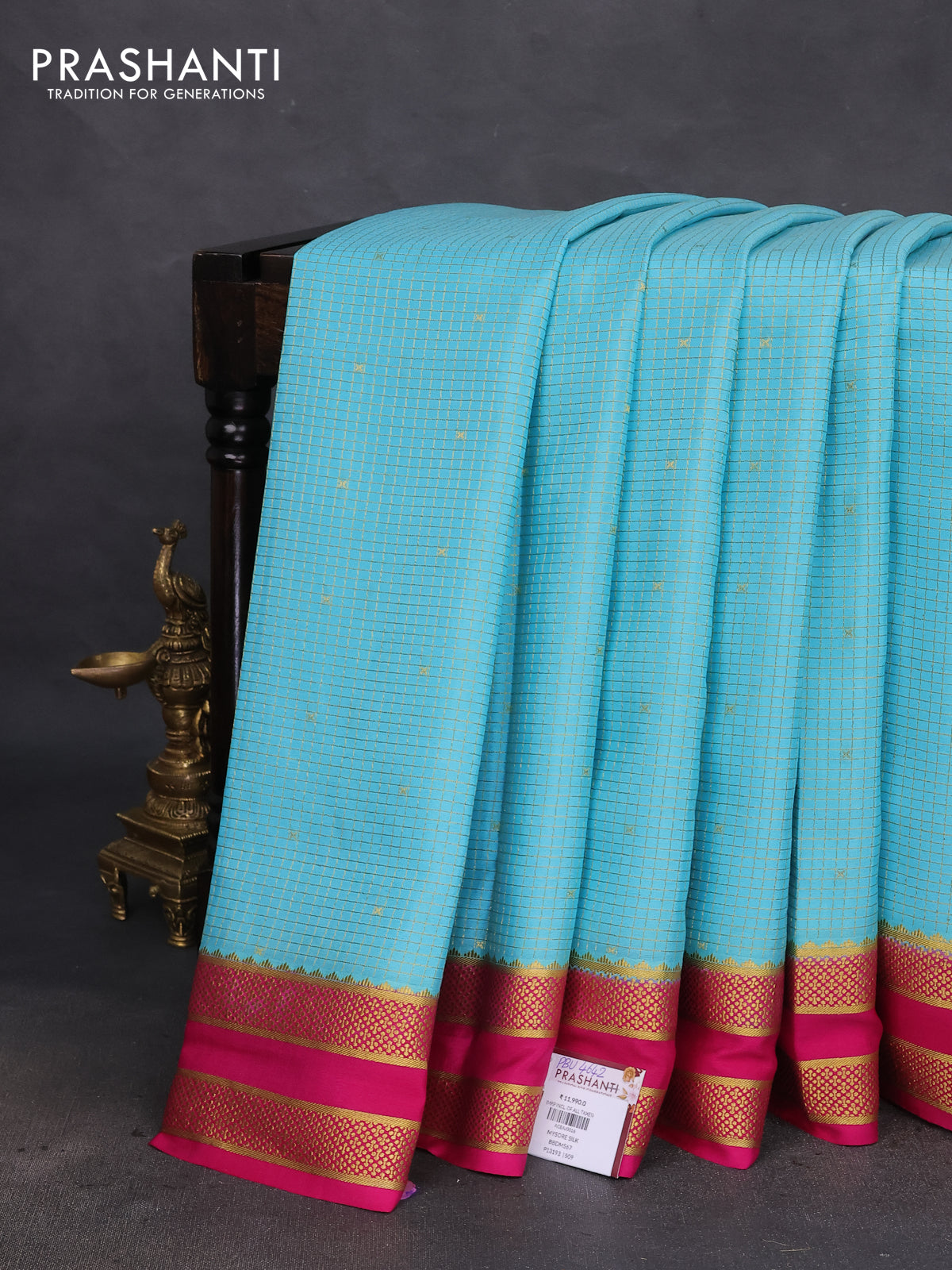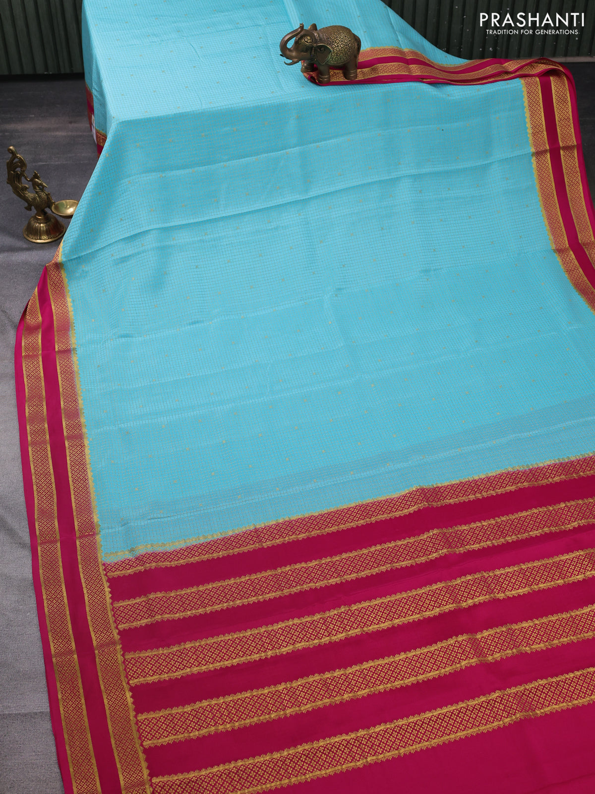 Pure mysore silk saree light blue and pink with allover small zari checked pattern and rettapet zari woven border