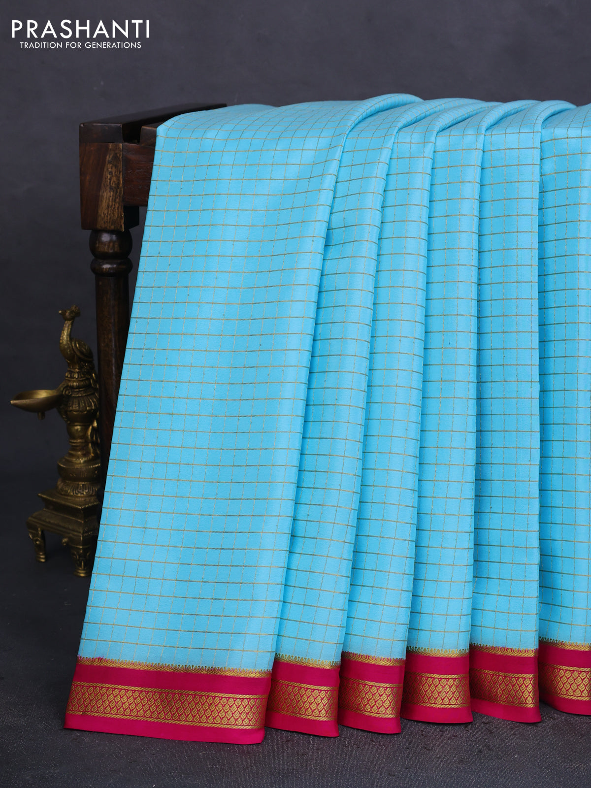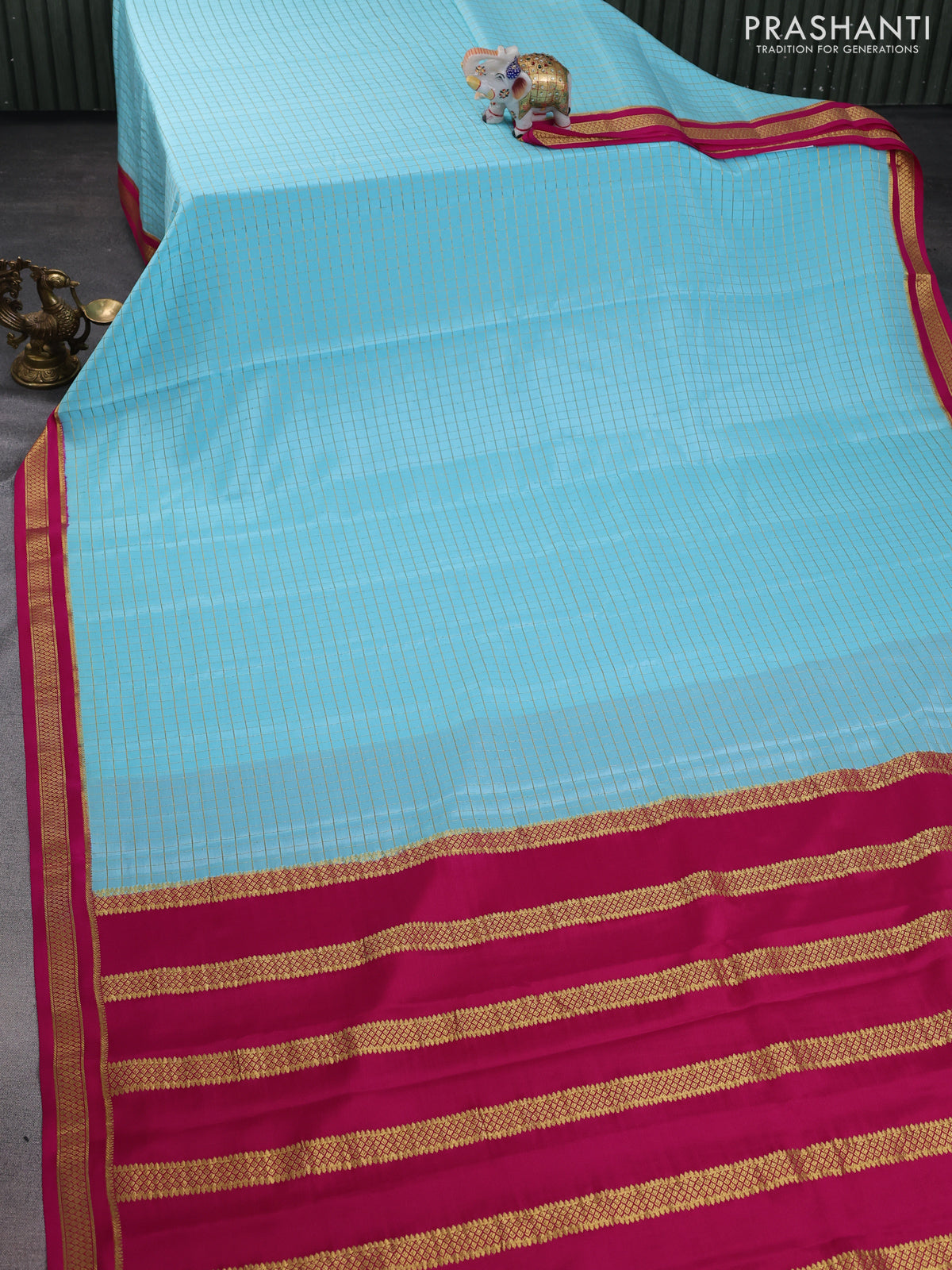 Pure mysore silk saree light blue and pink with allover zari checked pattern and zari woven border