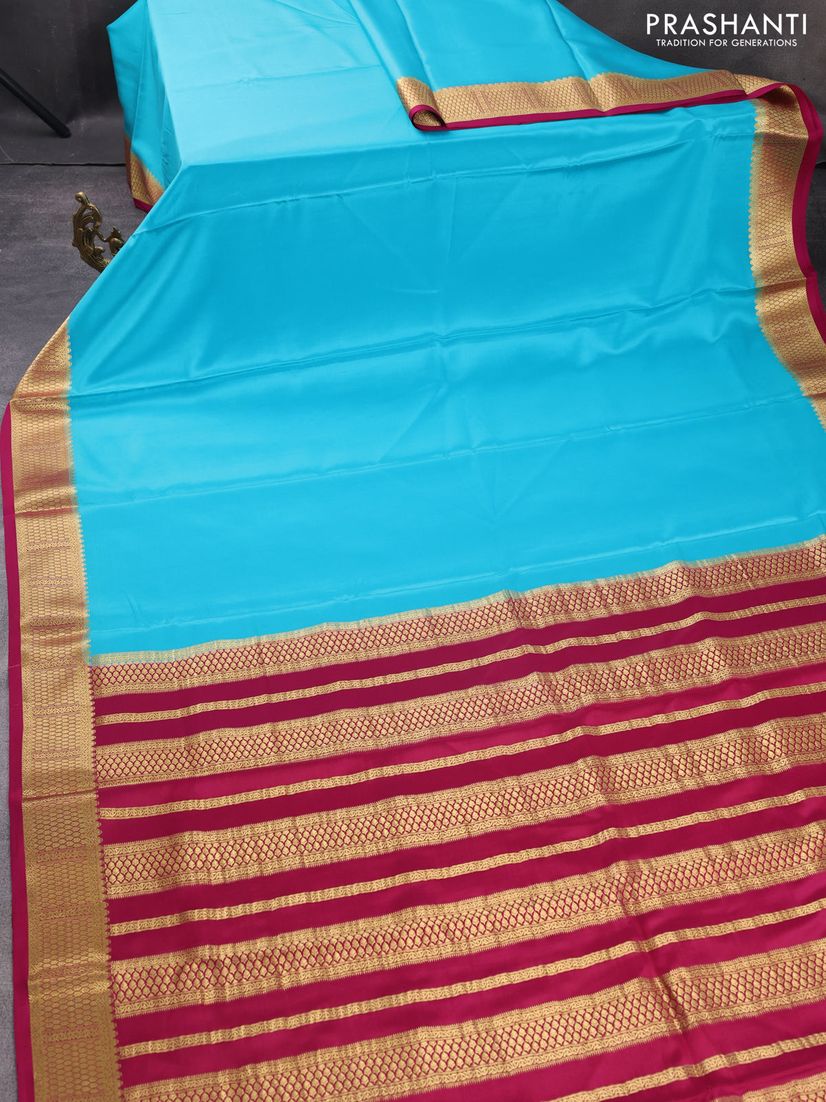 Pure mysore silk saree light blue and pink with plain body and zari woven border