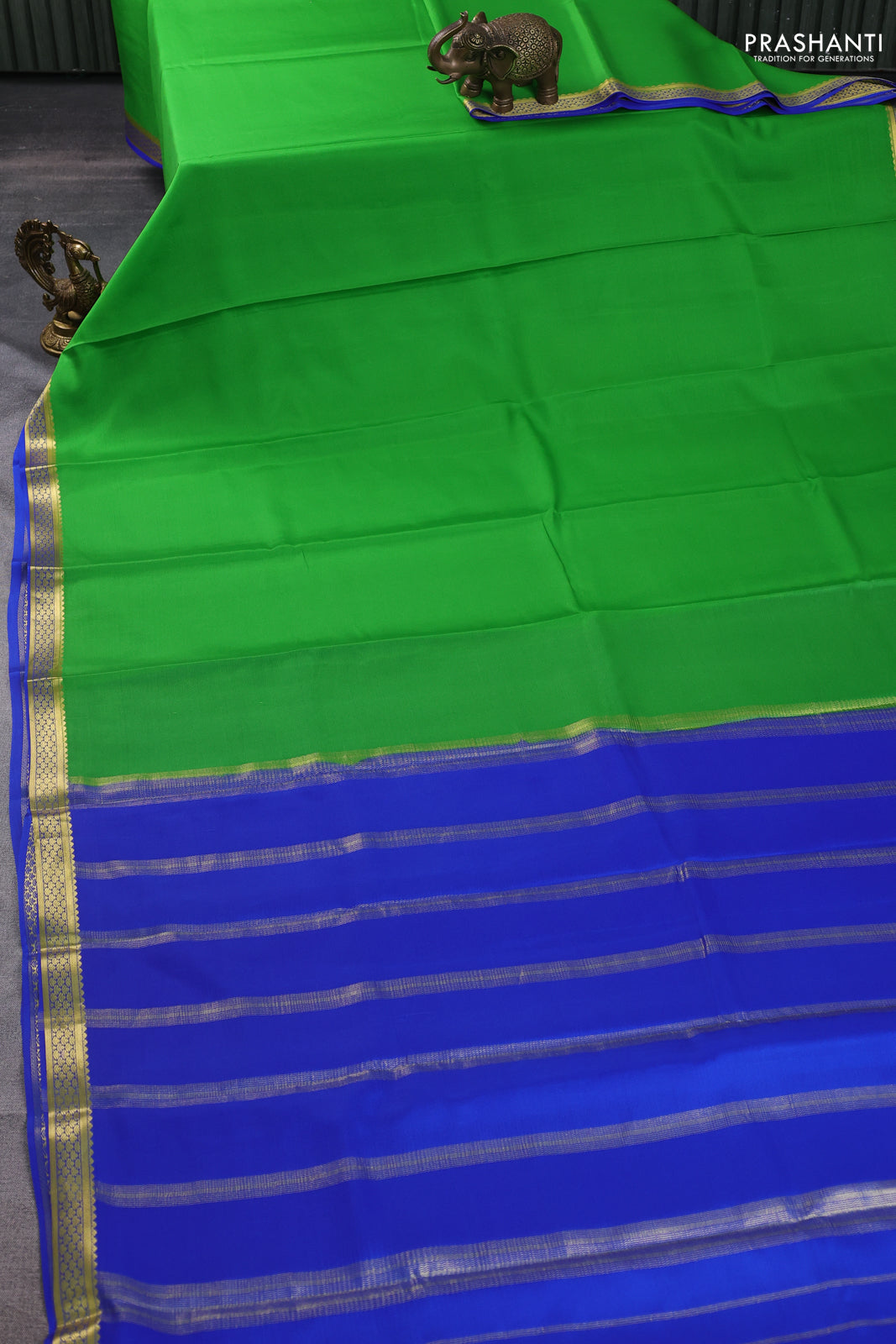 Pure mysore silk saree light green and blue with plain body and zari woven border