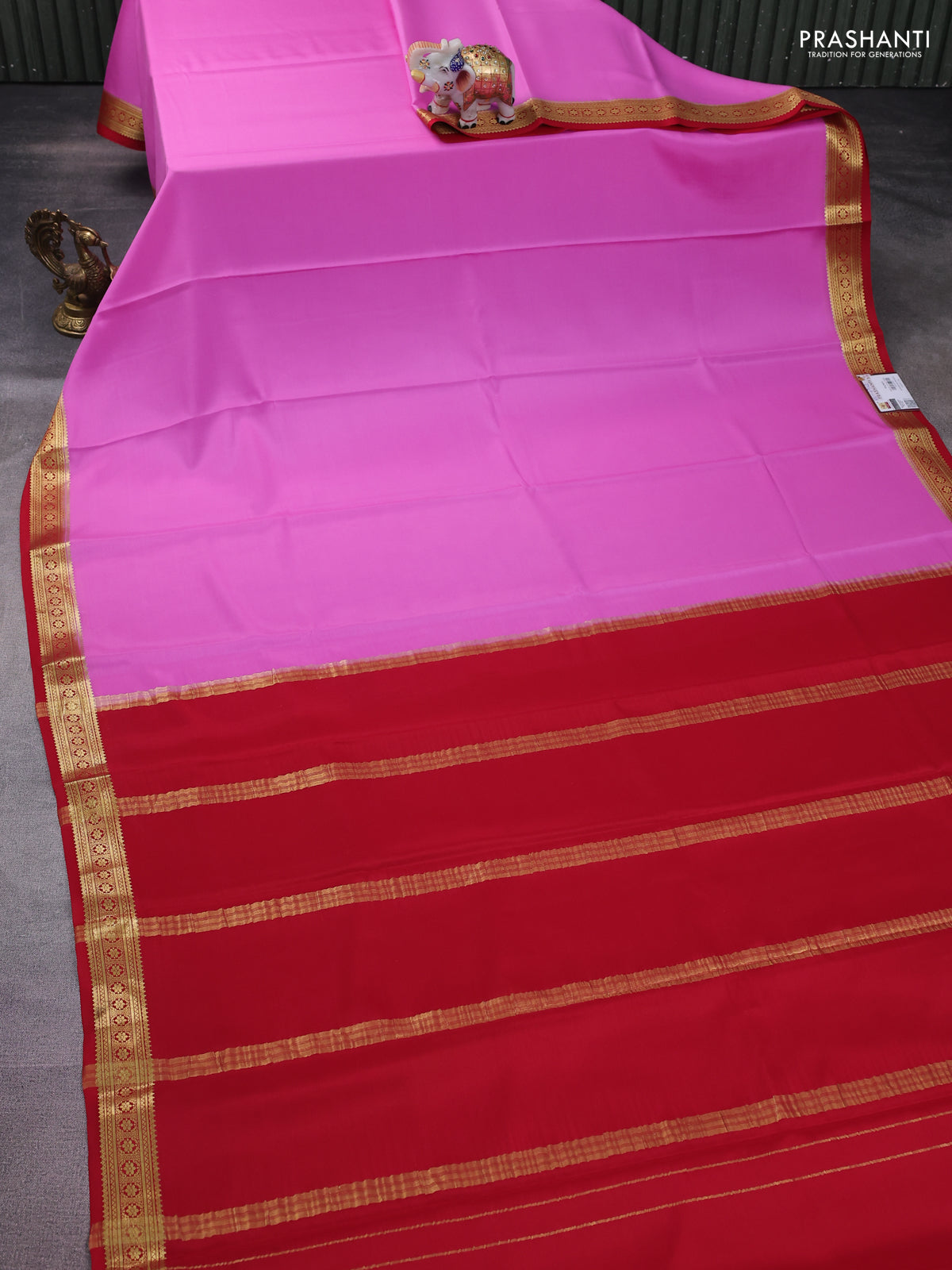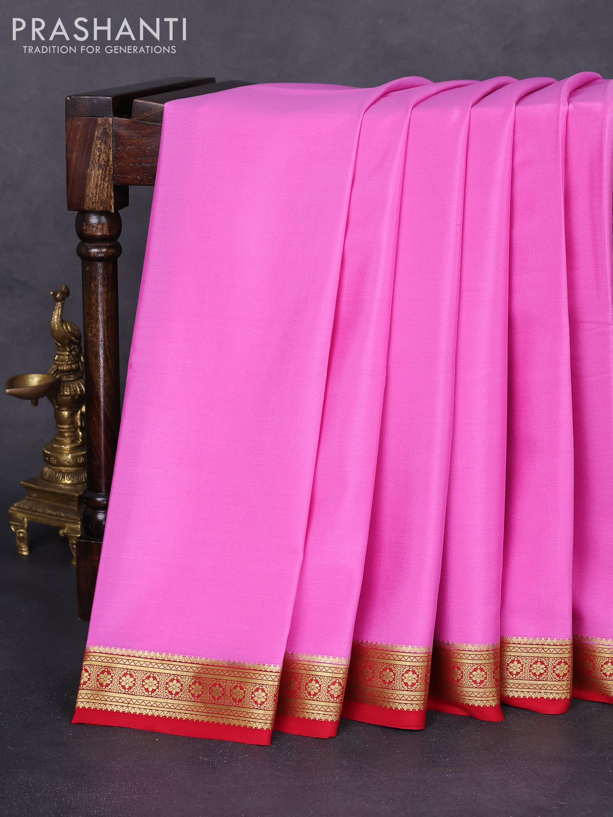 Pure mysore silk saree light pink and red with plain body and zari woven border