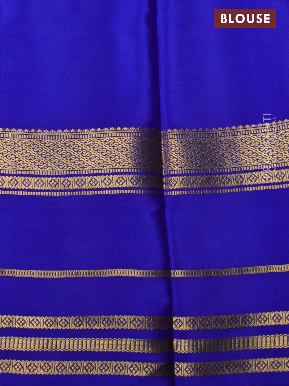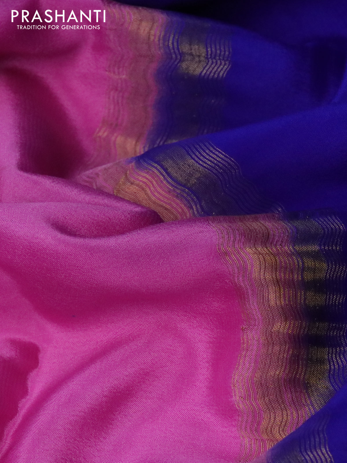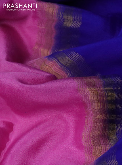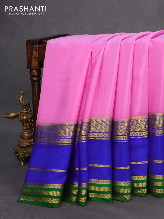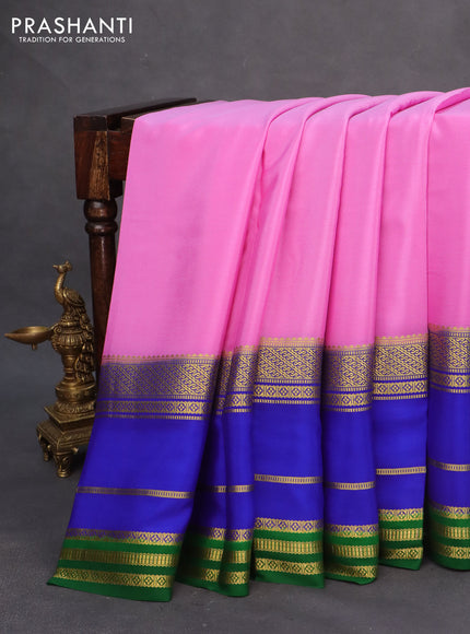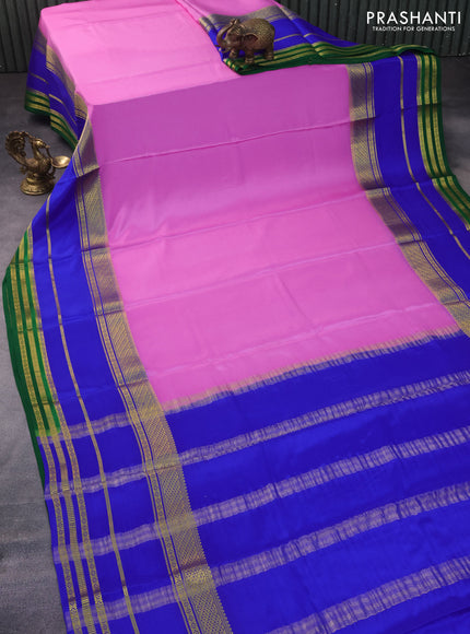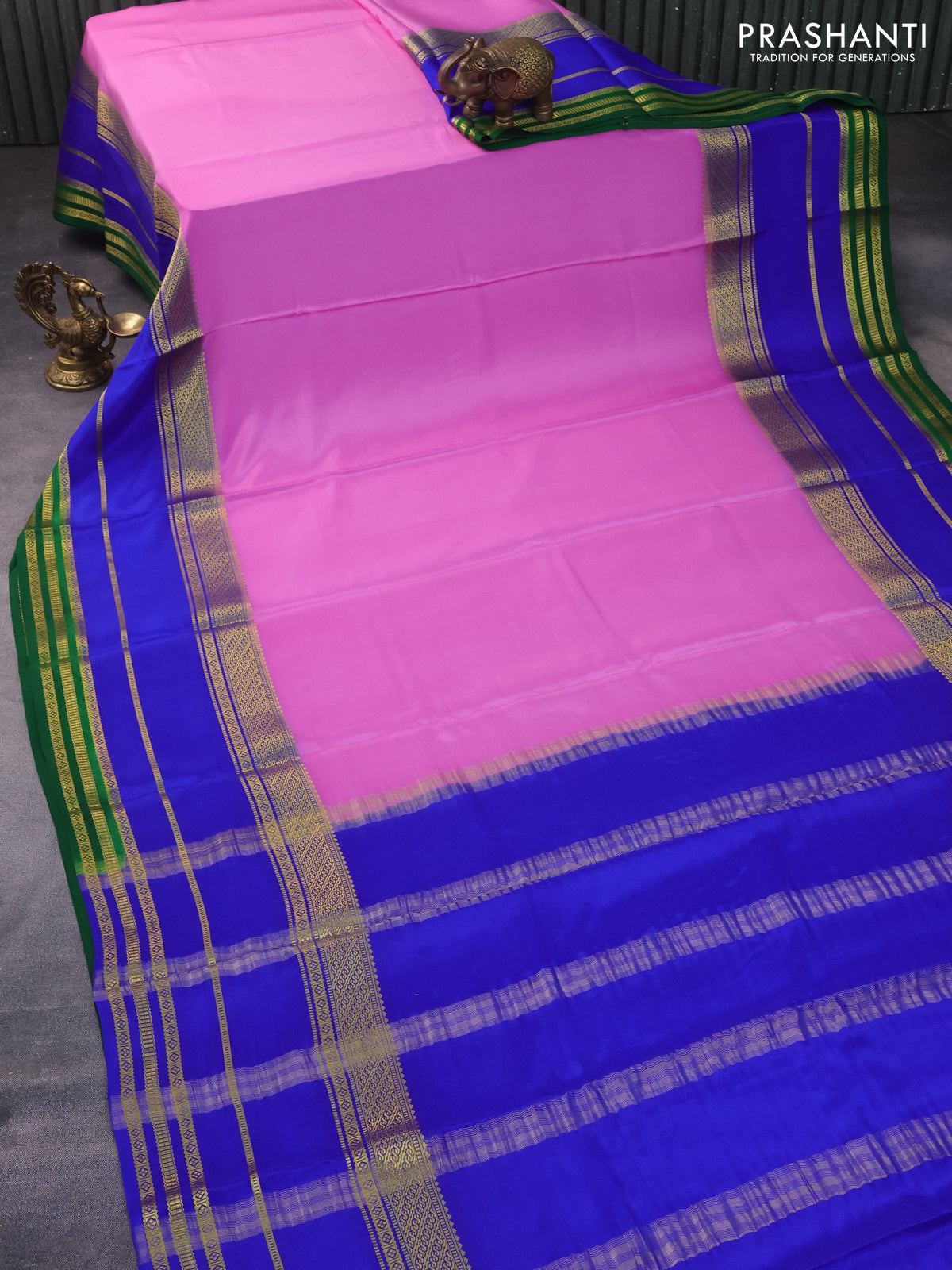 Pure mysore silk saree light pink and royal blue green with plain body and zari woven border