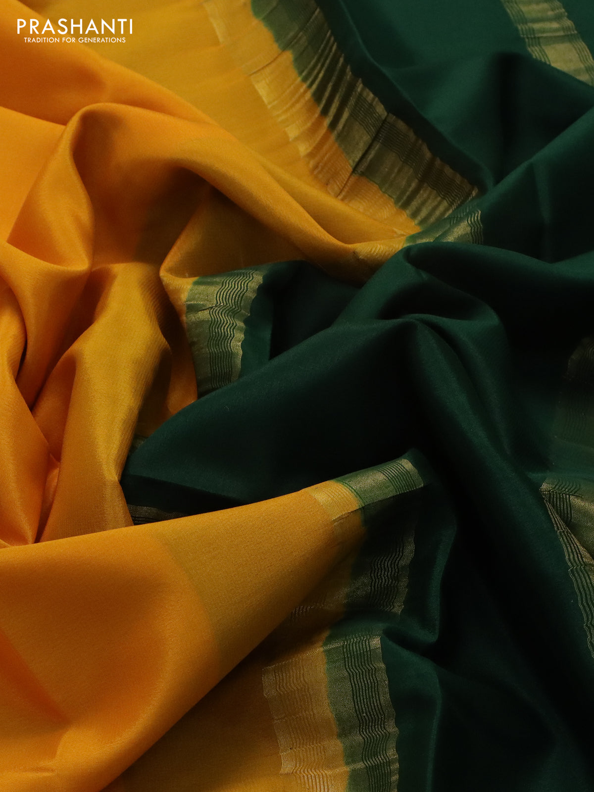 Pure mysore silk saree mango yellow and green with plain body and zari woven border