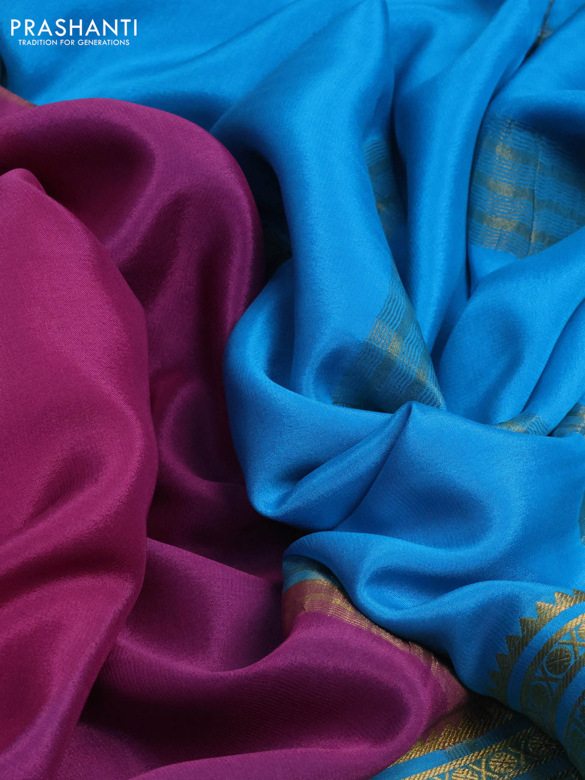 Pure mysore silk saree mauve pink and cs blue violet with plain body and long zari woven border